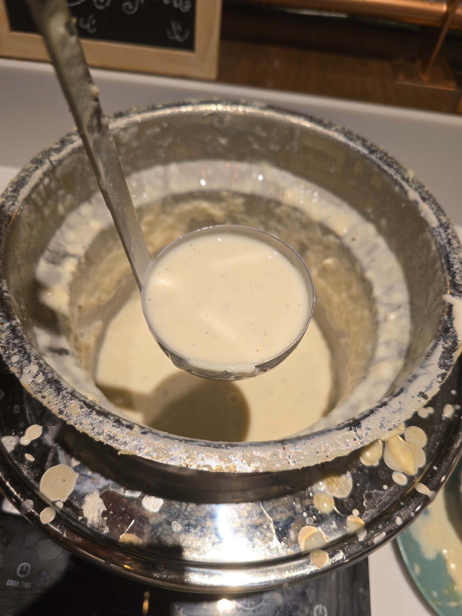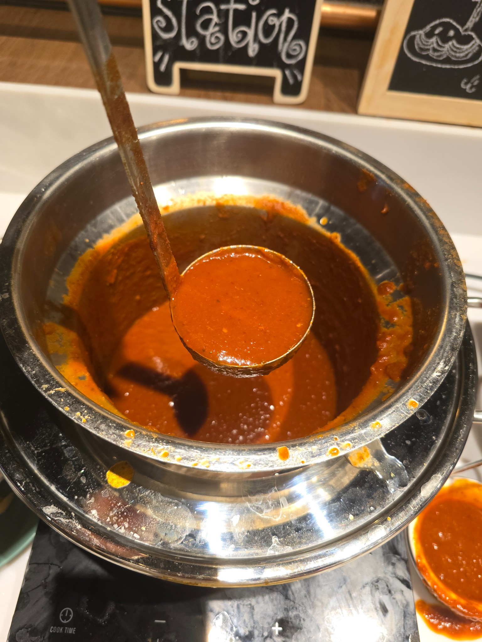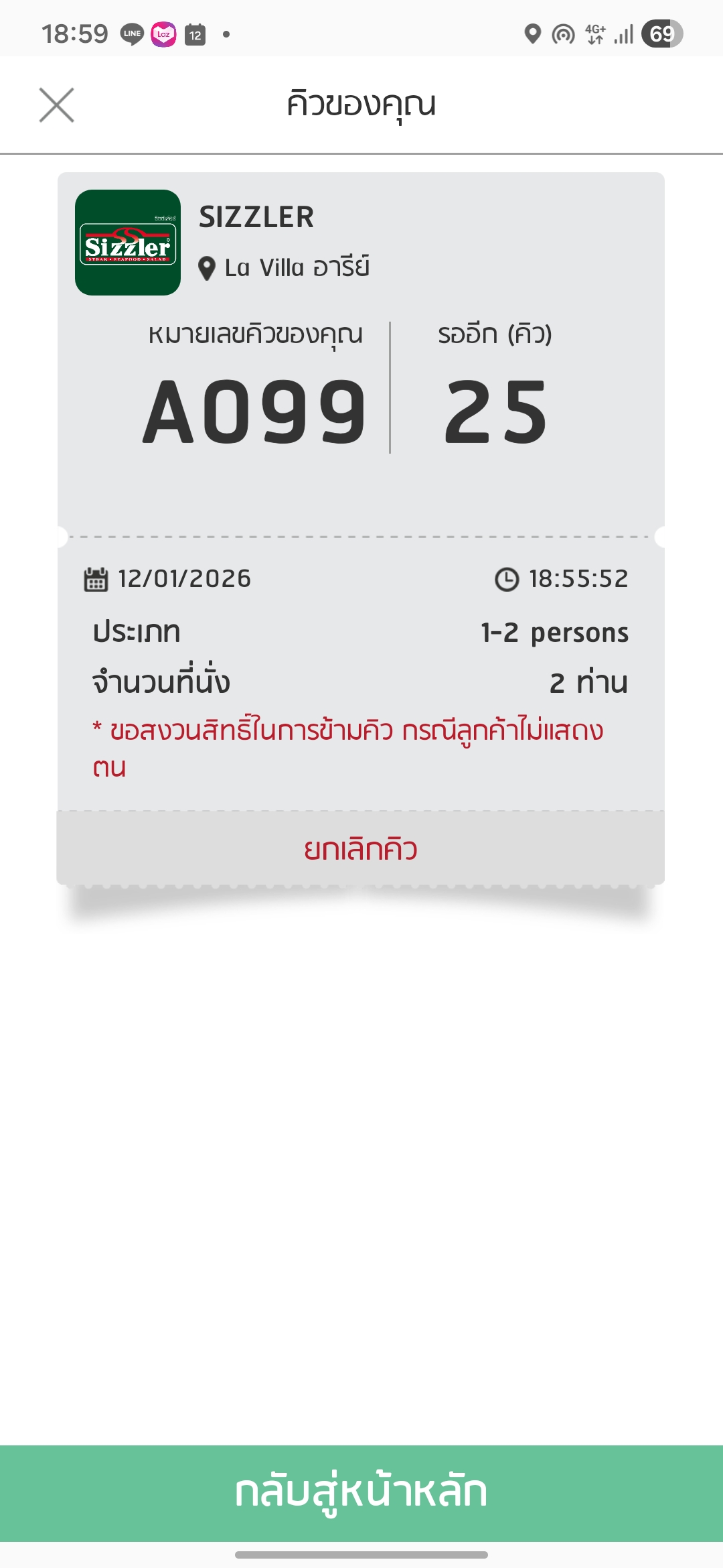 เริ่มแรกผมพยายามจะจองผ่านแอป QueQ ตั้งแต่เข้ารัศมี 5 กม. แบบที่เคยทำได้ แต่รอบนี้กดรีเฟรชยังไงก็จองไม่ได้ครับ จนเดินไปถึงหน้าร้าน พนักงานแจ้งว่า "ตอนนี้เปิดรับคิวหน้าร้านเท่านั้น" เนื่องจากที่ผ่านมามีลูกค้าจองผ่านแอปแล้วไม่มาตามคิวเยอะครับ ผมไปถึงเจอไป 27 คิวเบาๆ รอประมาณ 50 นาทีถึงจะได้โต๊ะครับ