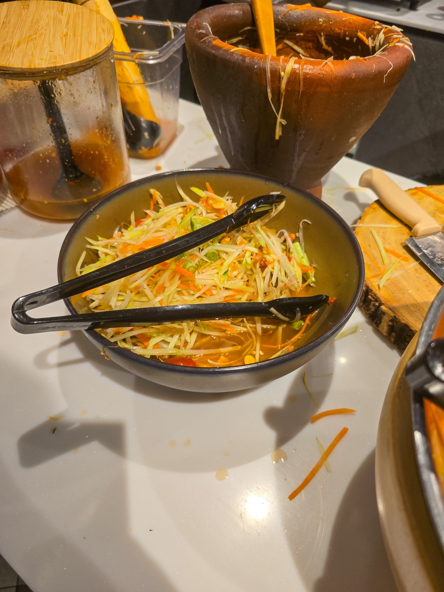 Station ส้มตำ: เป็นแบบตำสด ถ้าเหลือติดก้นครกพนักงานจะเททิ้งแล้วตำใหม่เลย รอบที่แล้วแซ่บมาก แต่รอบนี้แอบรสอ่อนไปหน่อยครับ