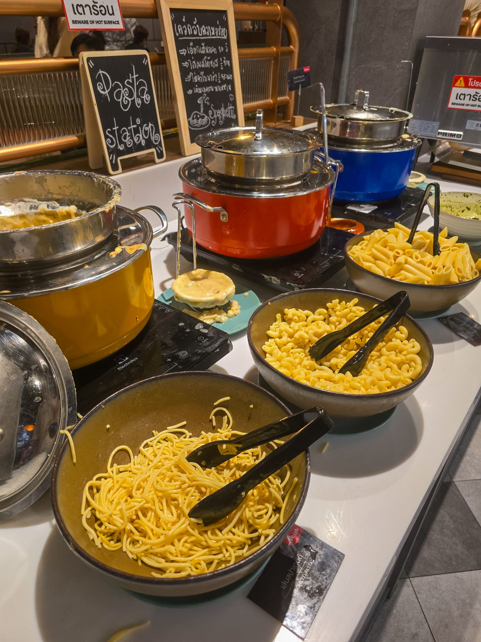 Pasta & Sauce: มีพาสต้าลวกใหม่ๆ ให้เลือกหลายเส้น ทานคู่กับซอสคาโบนาร่า หรือซอสทูน่าครับ