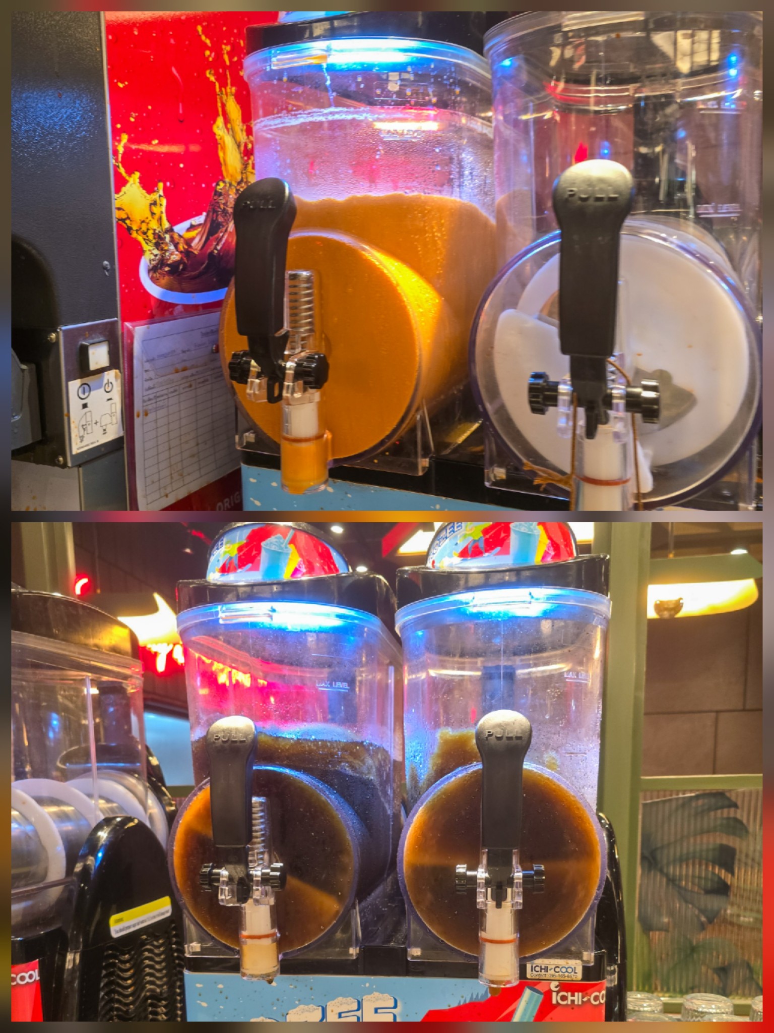 เครื่องดื่ม Slushy: มีชาไทยสลัชชี่กับโค้กฟรอเซ่น รวมอยู่ในราคาบุฟเฟต์แล้วครับ กดได้ไม่อั้น