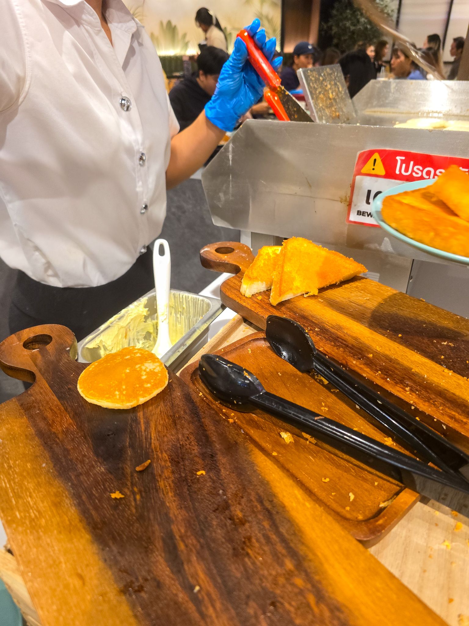 เริ่มต้นด้วยบุฟเฟ่ต์ชีสโทสต์ กินได้ทั้งเป็นของว่าง หรือจะราดน้ำผึ้ง ซอสช็อกโกแลต ซอสสตรอว์เบอร์รี่ให้กลายเป็นจานของหวานคู่แพนเค้กก็ได้ครับ