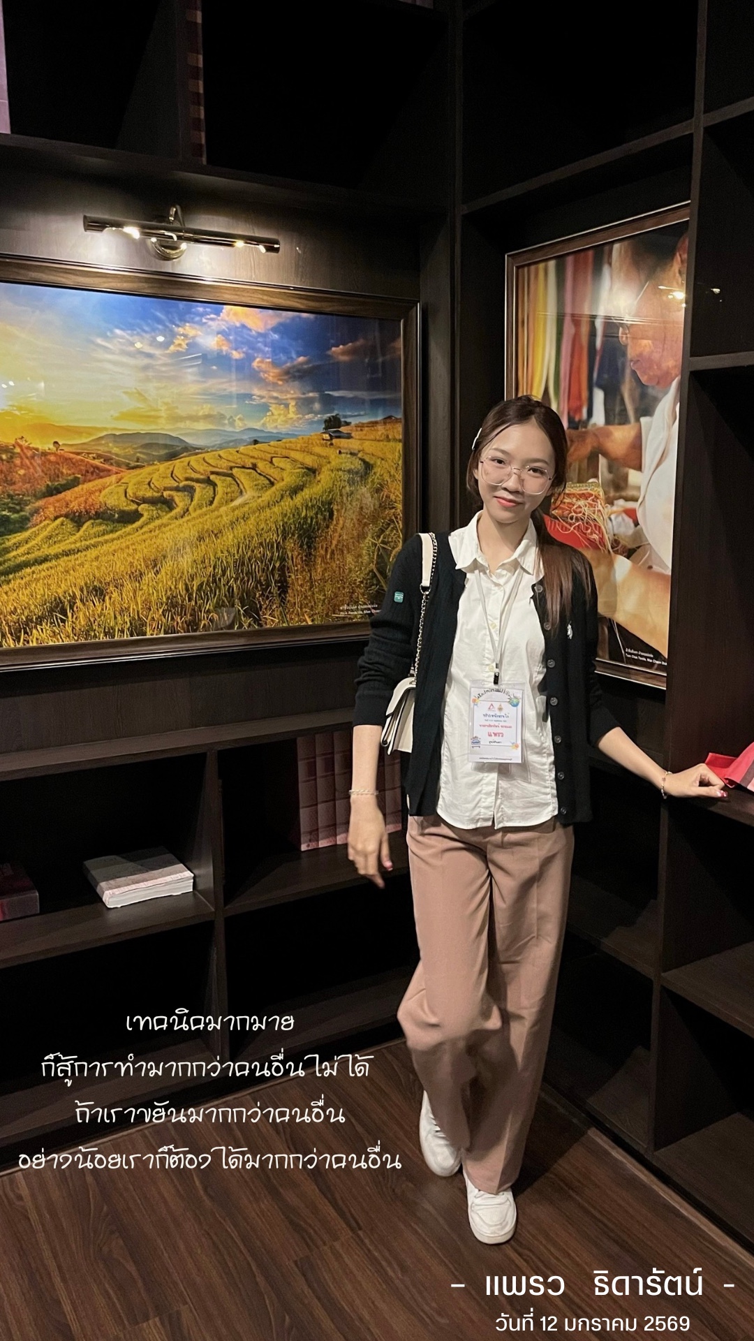 - สวัสดีค่ะ แพรวนะคะนางสาวธิดารัตน์พรมแดง นักศึกษาชั้นปีที่2 คณะศิลปศาสตร์ สาขาการท่องเที่ยวสร้างสรรค์