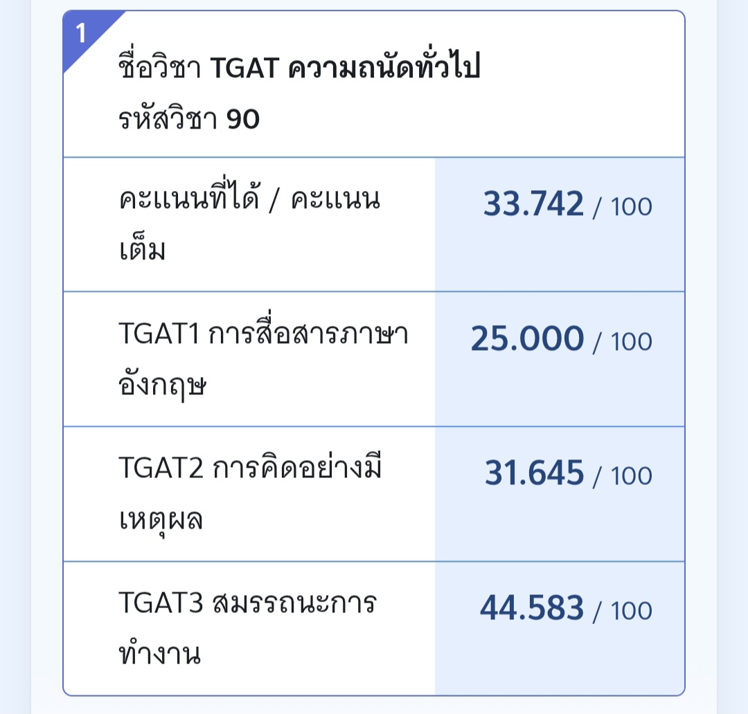 คะแนนTgat 69