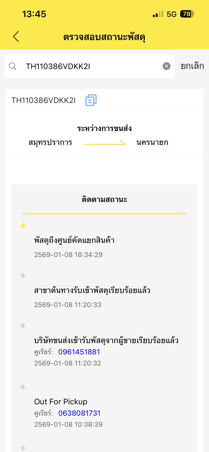 สถานะไม่อัพเดท ต้องทำยังไงครับ โทรบอกจะประสานงานให้ แต่ก็เงียบ เลขพัสดุ TIK0109623701