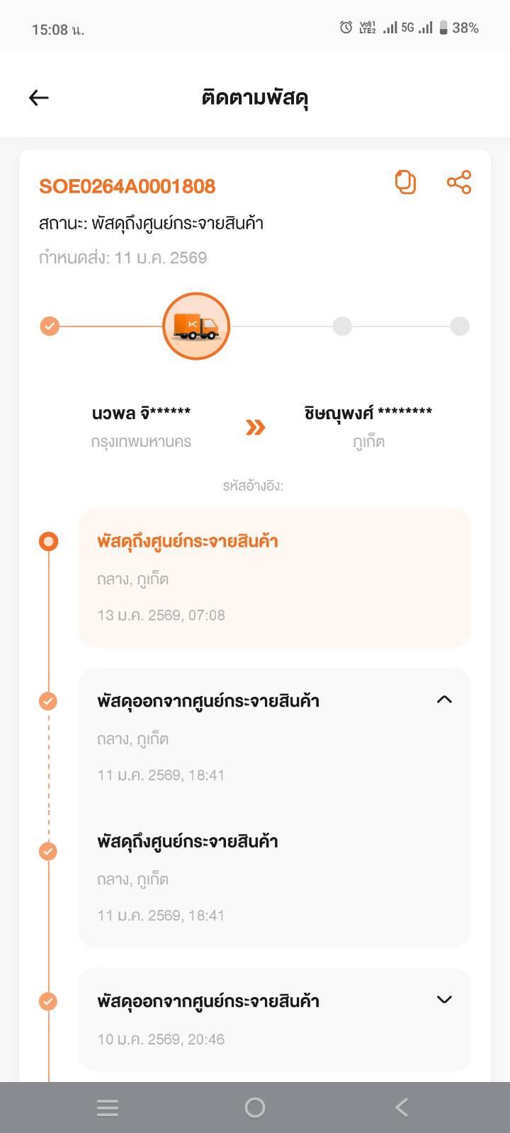พัสดุอยู่ที่เดิม2-3วันละครับ ยังไม่ได้เลย