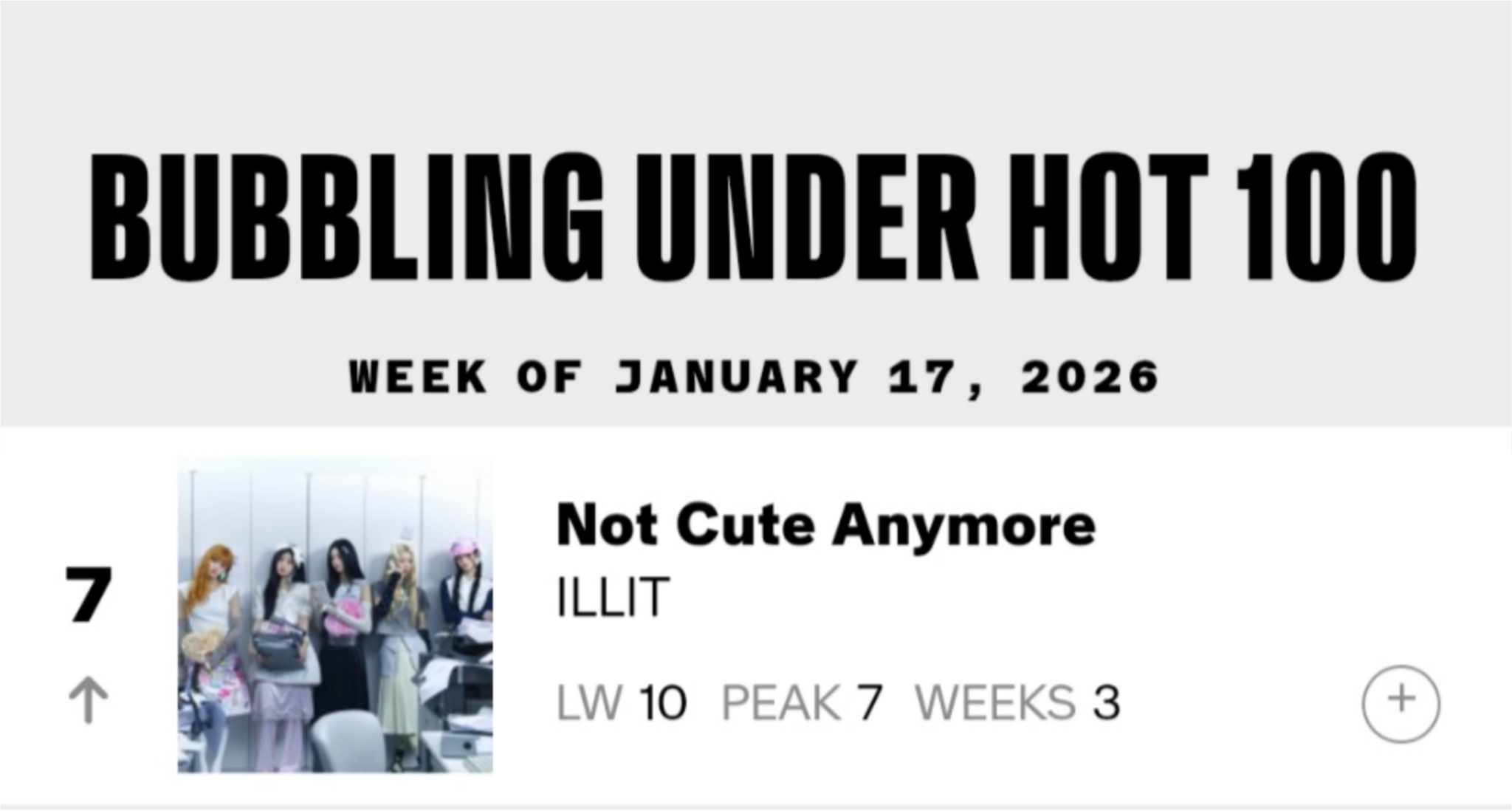 ILLIT <NOT CUTE ANYMORE> ขึ้นสู่อันดับที่ #7 บนชาร์ต Billboard Bubbling Under HOT 100 [สัปดาห์ที่ 3]