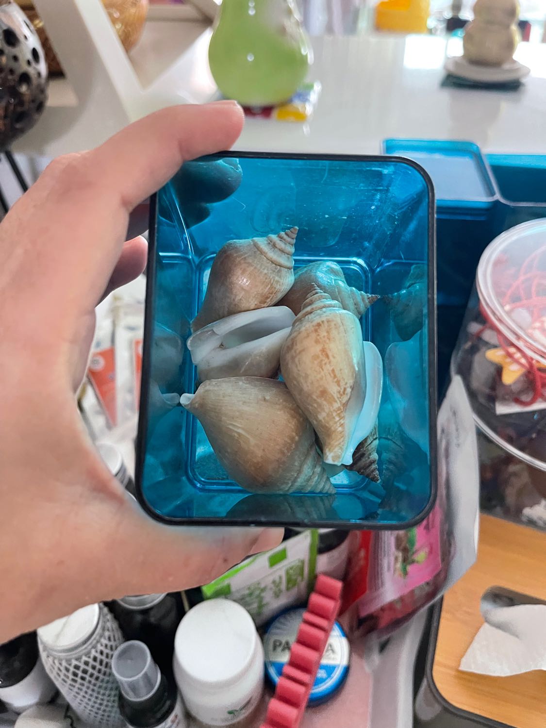 อย่างอันนี้ เก็บจากร้าน Maguro เอามาล้างแล้วทำเป็นฐานวางนางฟ้าแกะจากหินมูนสโตน เพราะชอบคอนเซปต์นางฟ้าบนเปลือกหอย เหมือนรูป The Birth of Venus ของ Botticelli