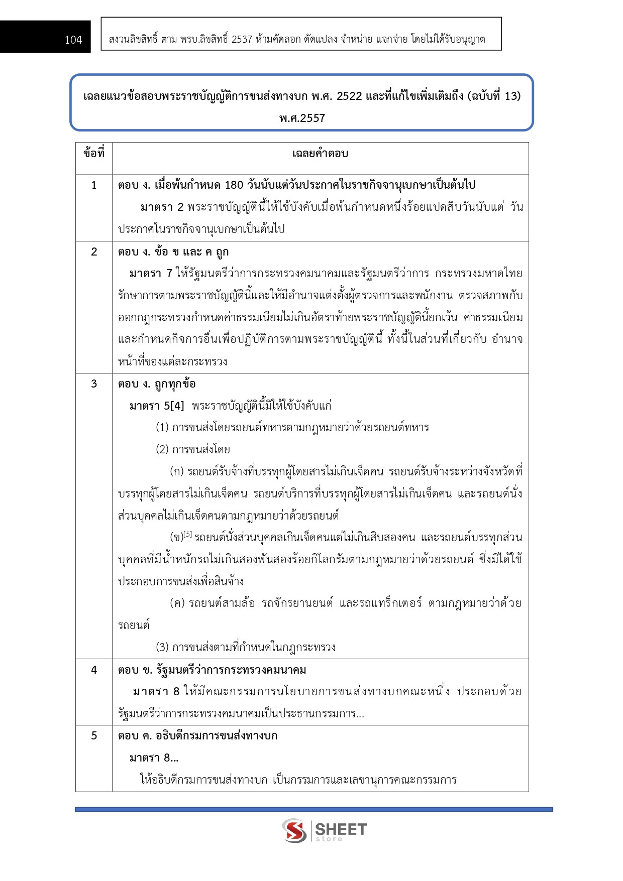 - แนวข้อสอบพระราชบัญญัติการขนส่งทางบก พ.ศ. 2522 และที่แก้ไขเพิ่มเติม (ฉบับที่ 13) พ.ศ. 2557