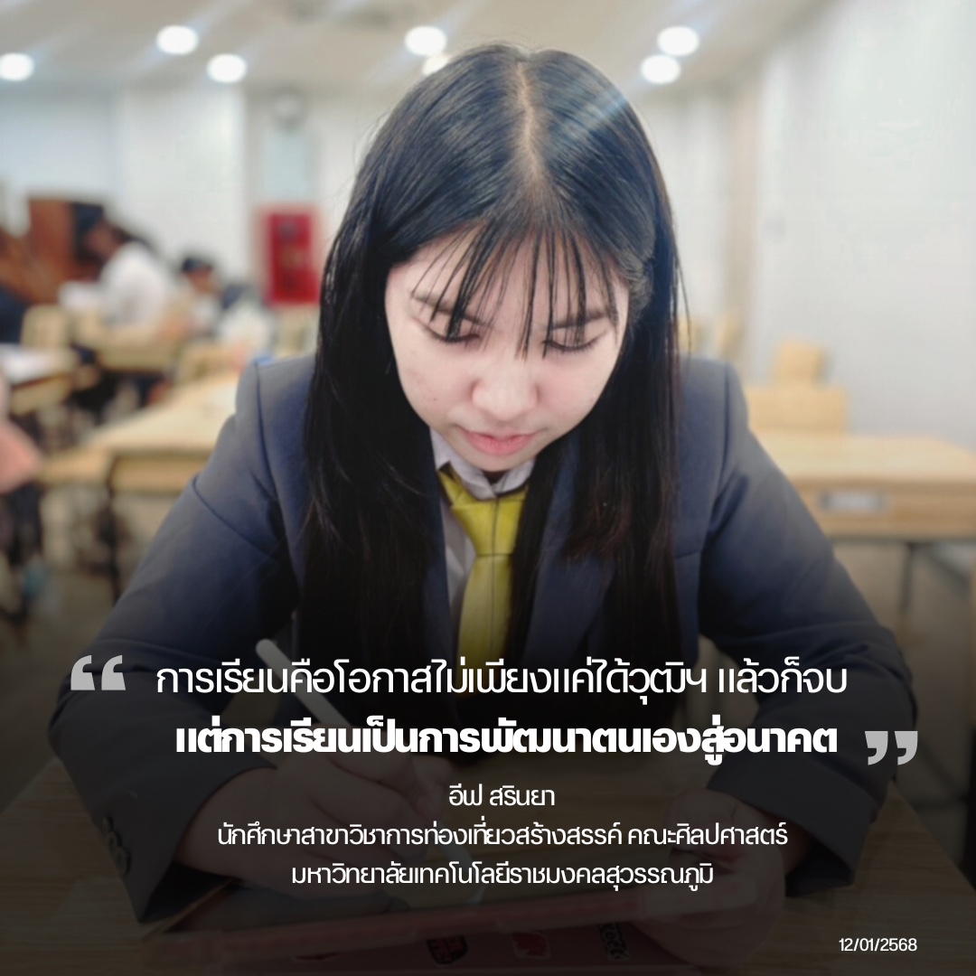 • เริ่มจากเหตุผลหลักที่พี่อีฟตัดสินใจย้ายมาเรียนที่มหาวิทยาลัยเทคโนโลยีราชมงคลสุวรรณภูมิ?