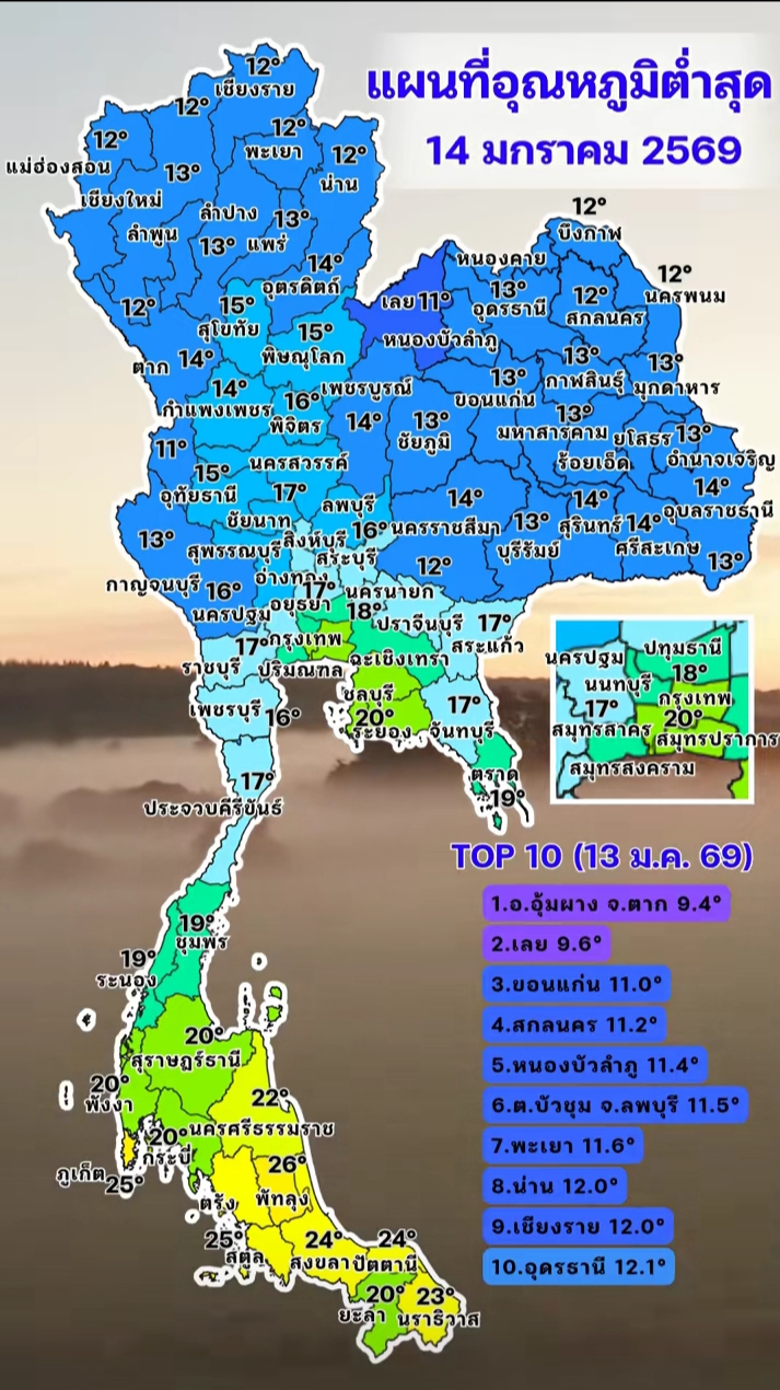 ช่วงนี้หลายพื้นที่ในเมืองไทยอากาศเย็นลงอย่างเห็นได้ชัด โดยเฉพาะตอนเช้าและกลางคืน บางจังหวัดภาคเหนือและอีสานอุณหภูมิลดลงไปถึงเลขตัวเดียว ส่วนกรุงเทพฯ และภาคกลางก็สัมผัสได้ถึงลมหนาวที่ไม่ค่อยเจอบ่อยนัก