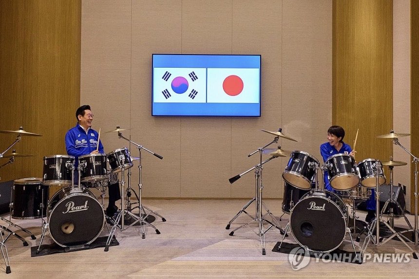 ประธานาธิบดีอี แจ-มยอง และนายกรัฐมนตรีซานาเอะ ทาคาอิจิ ร่วมตีกลองด้วยกัน โดยใช้เพลง "Golden" และเพลงฮิต "Dynamite"