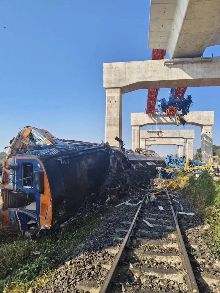 ด่วน! เครนก่อสร้างรถไฟฟ้าความเร็วสูงถล่มทับขบวนรถไฟ เบื้องต้นดับ 4 ราย