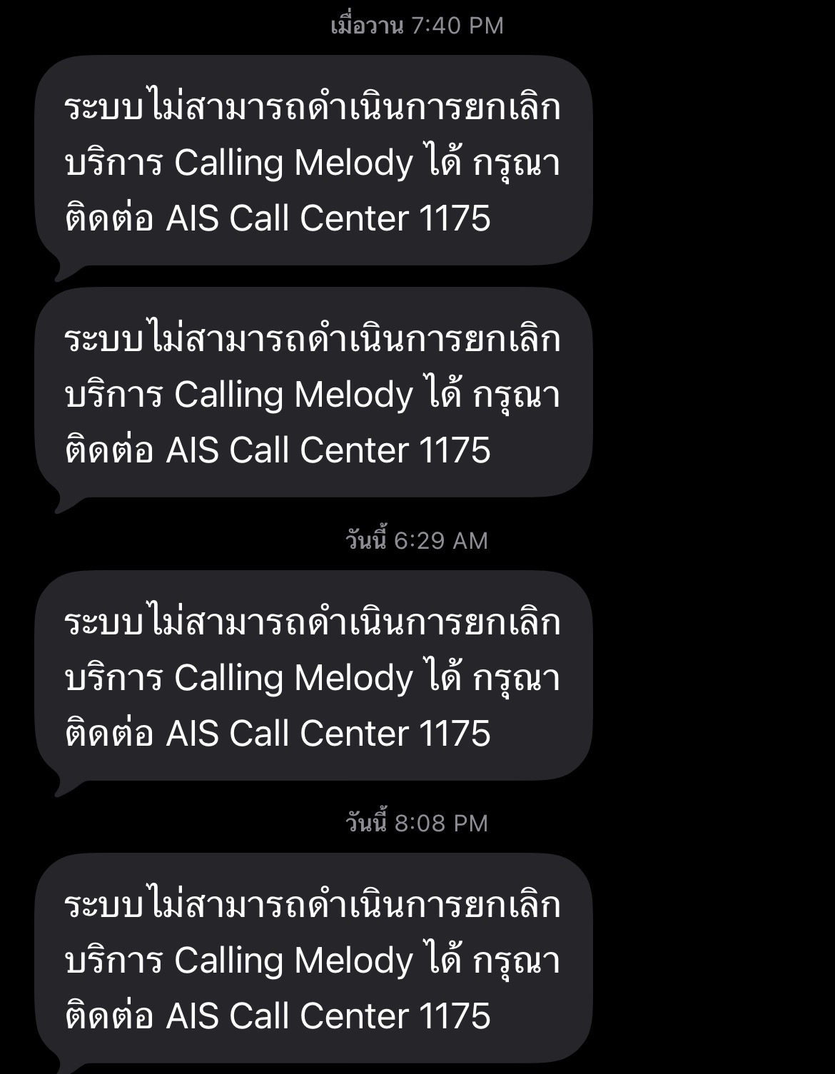 AIS ช่วยยกเลิกเพลงรอสาย Calling Melody ให้ด้วยครับ ผมลองยกเลิกด้วยตัวเองทุกวิธีแล้วทั้ง *788 และ *1175 ไม่สามารถยกเลิกได้
