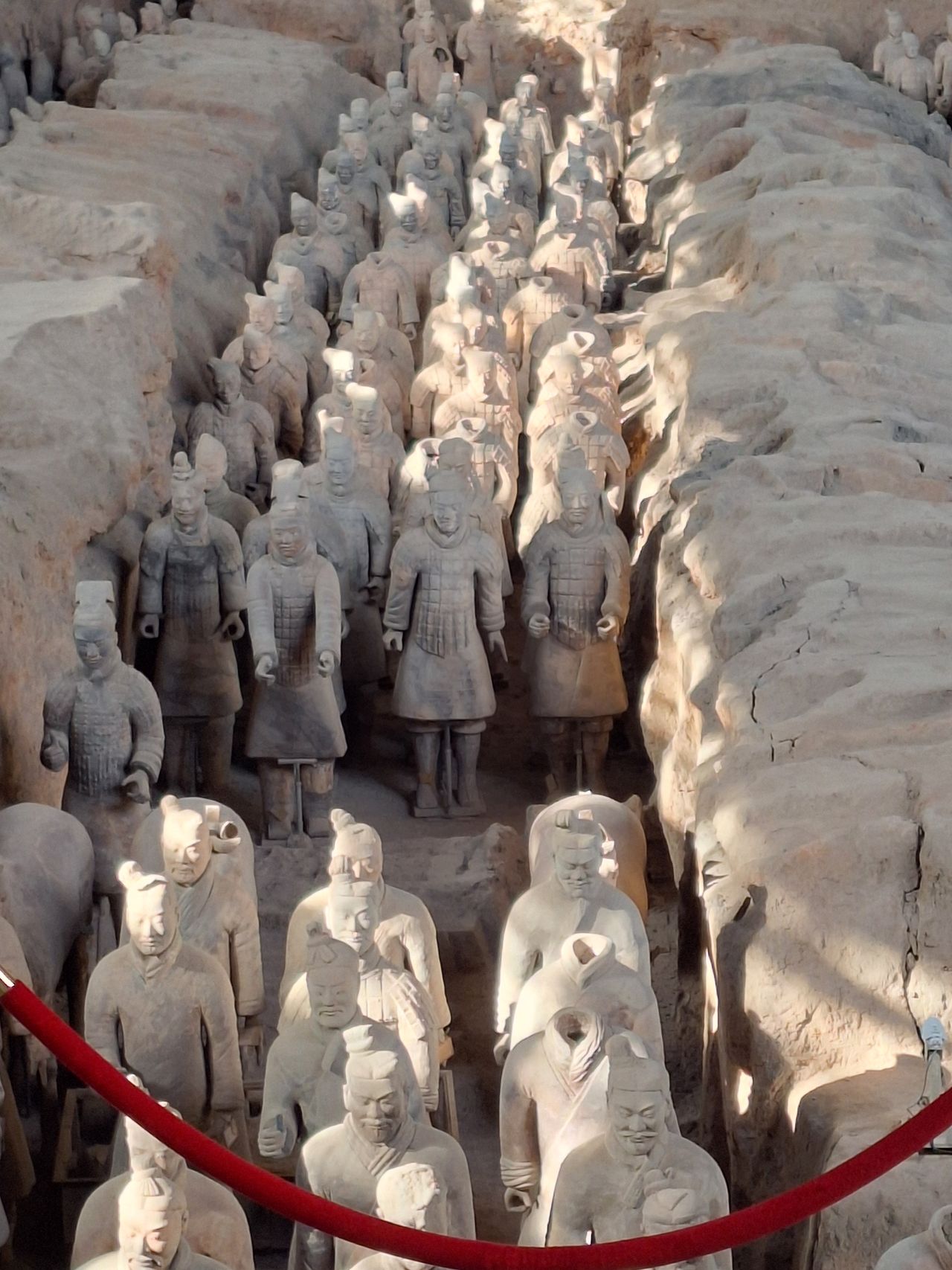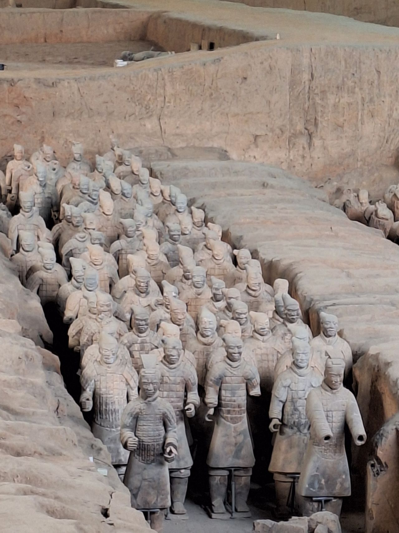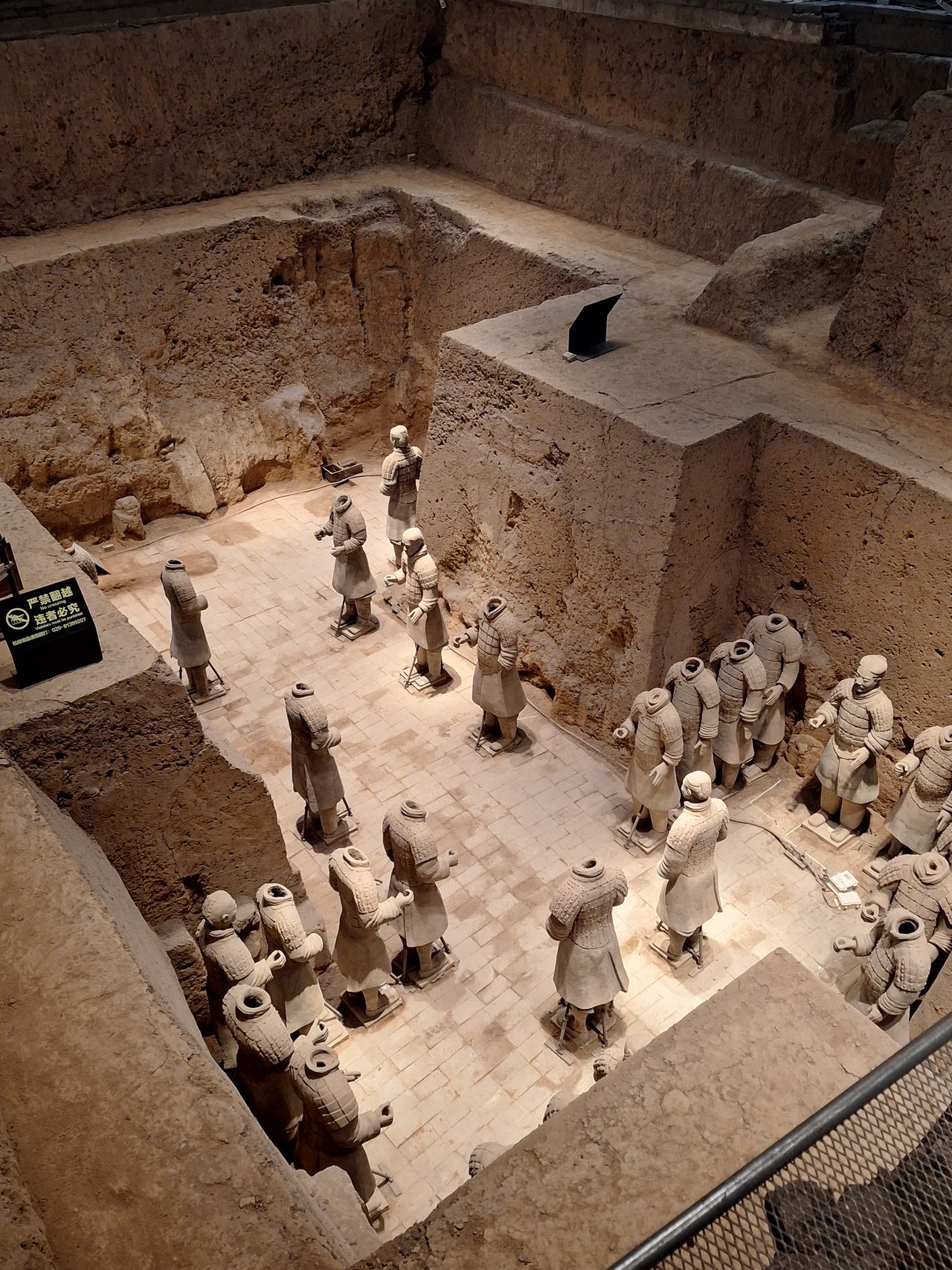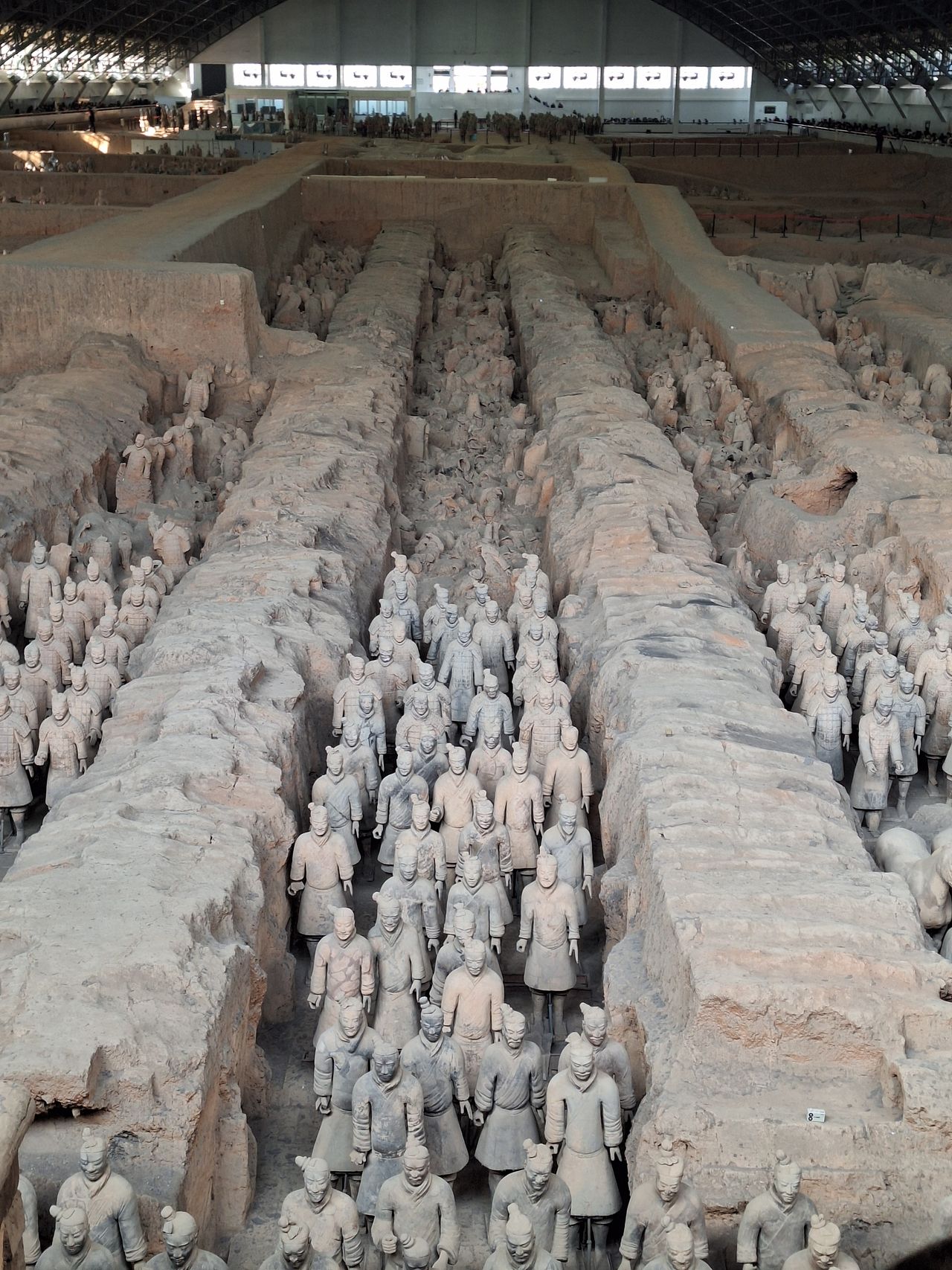 พิพิธภัณฑ์สุสานจักรพรรดิฉินซีฮ่องเต้ที่ประทับใจมาก พิพิธภัณฑ์นี้ประกอบด้วย พิพิธภัณฑ์ทหารดินเผาฉินซีฮ่องเต้ Terracotta warriors ภายในมีรูปปั้นทหารกว่า 8,000 นาย, รถม้า 130 คัน, ม้า 520 ตัว และทหารม้าอีก 150 นาย ถ้าสังเกตดีๆ จะเห็นว่าทหารแต่ละนายมีใบหน้า ท่าทาง ทรงผม ที่แตกต่างกันด้วย เพราะเชื่อกันว่าสร้างเลียนแบบมาจากคนจริง