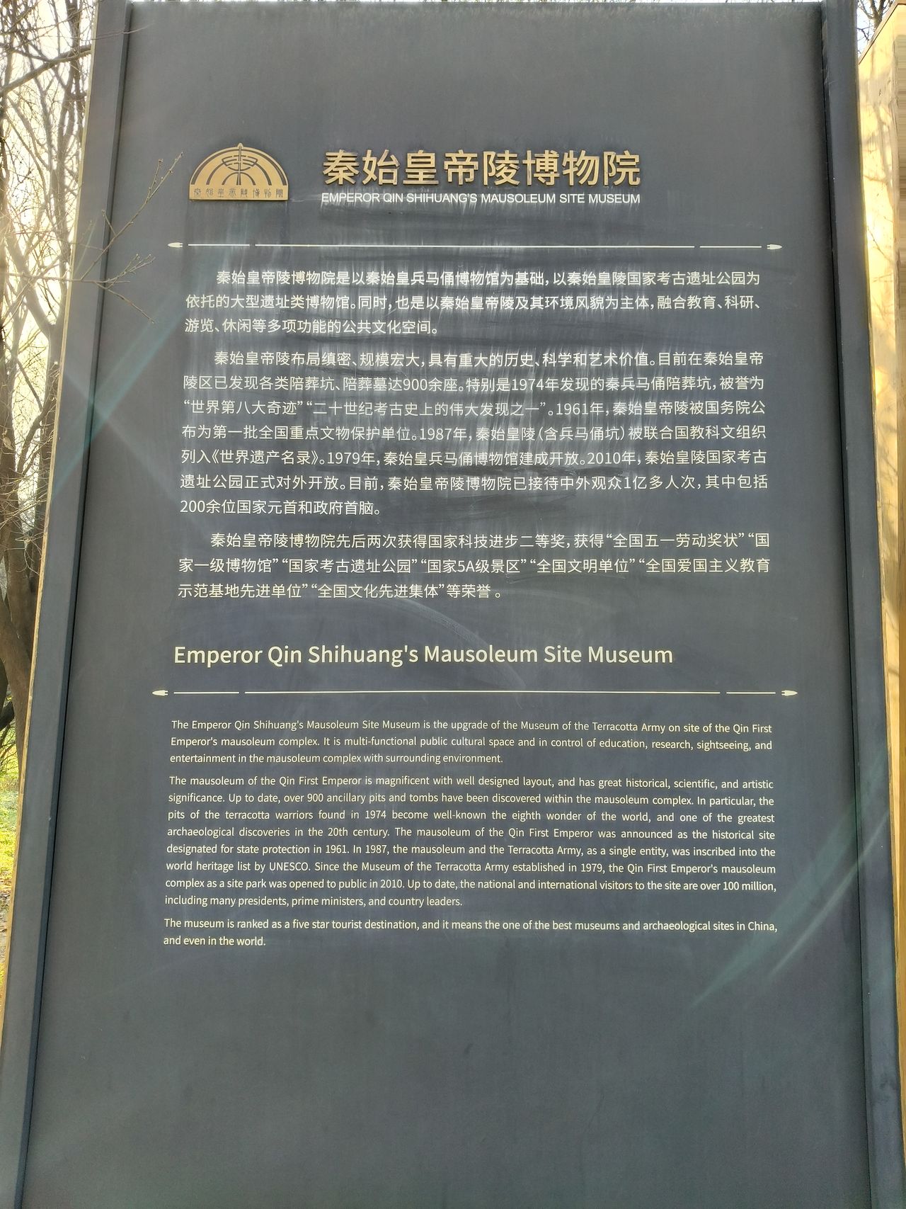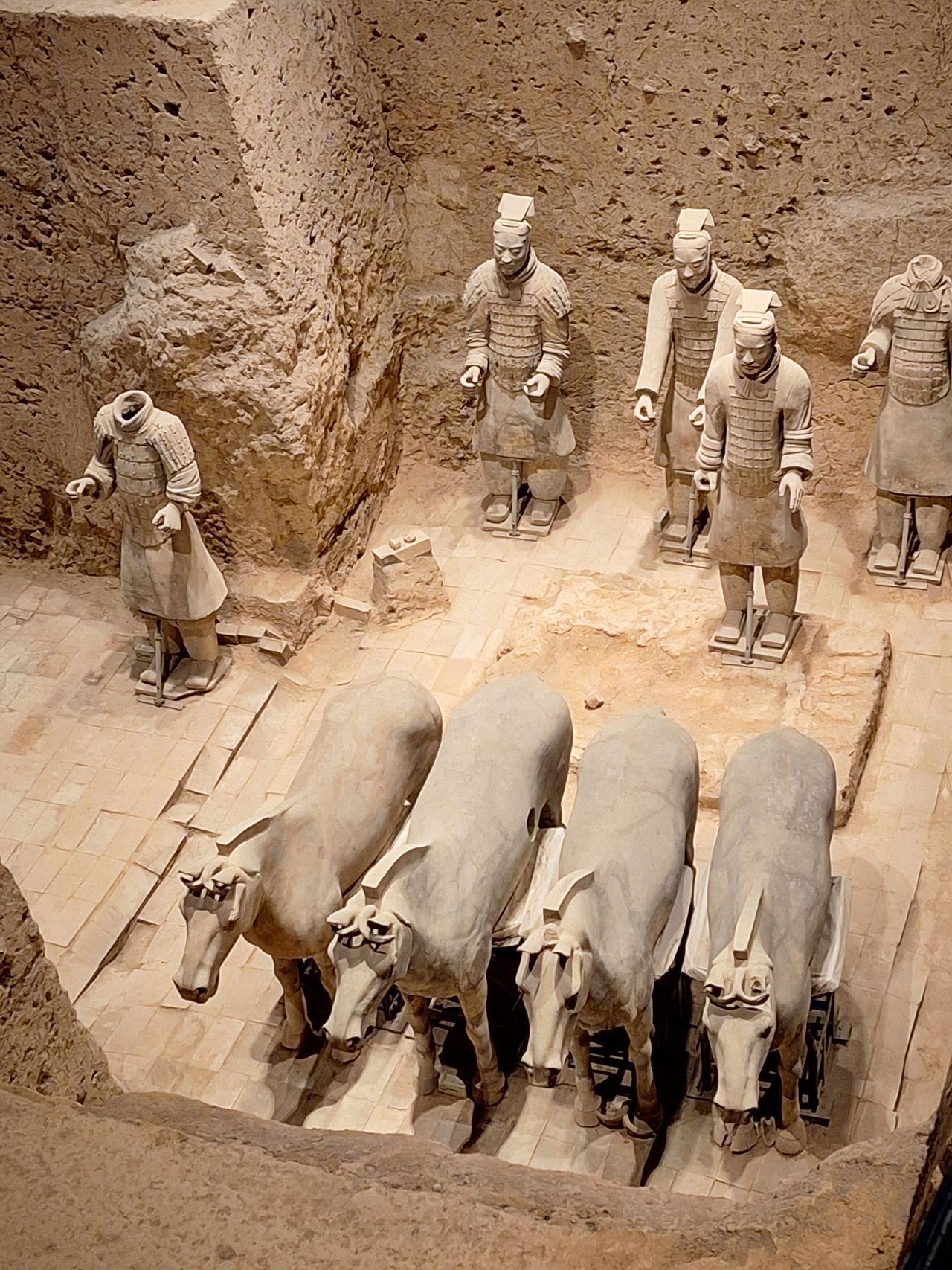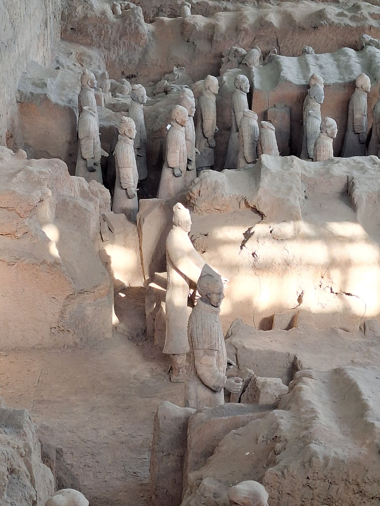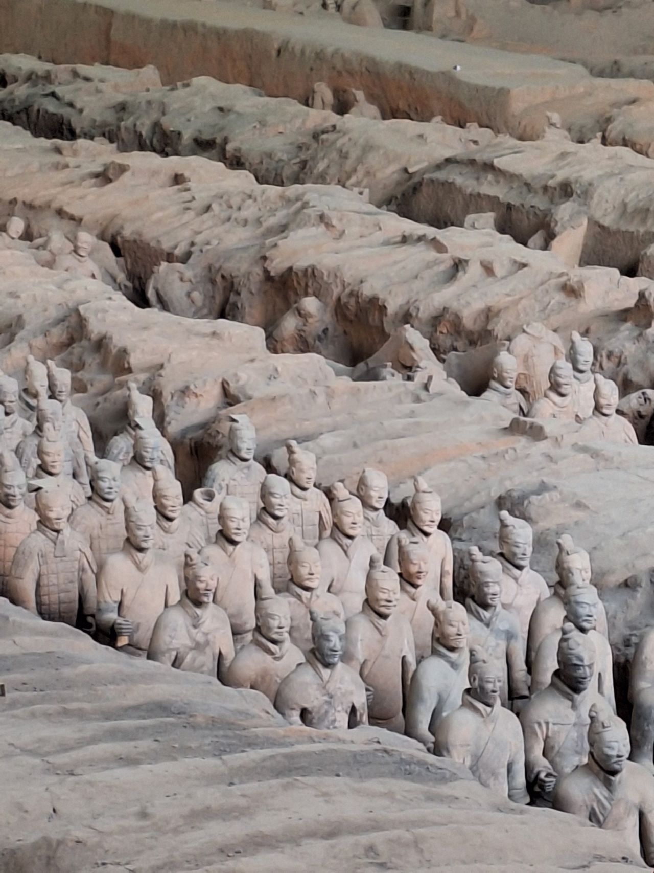 พิพิธภัณฑ์สุสานจักรพรรดิฉินซีฮ่องเต้ที่ประทับใจมาก พิพิธภัณฑ์นี้ประกอบด้วย พิพิธภัณฑ์ทหารดินเผาฉินซีฮ่องเต้ Terracotta warriors ภายในมีรูปปั้นทหารกว่า 8,000 นาย, รถม้า 130 คัน, ม้า 520 ตัว และทหารม้าอีก 150 นาย ถ้าสังเกตดีๆ จะเห็นว่าทหารแต่ละนายมีใบหน้า ท่าทาง ทรงผม ที่แตกต่างกันด้วย เพราะเชื่อกันว่าสร้างเลียนแบบมาจากคนจริง