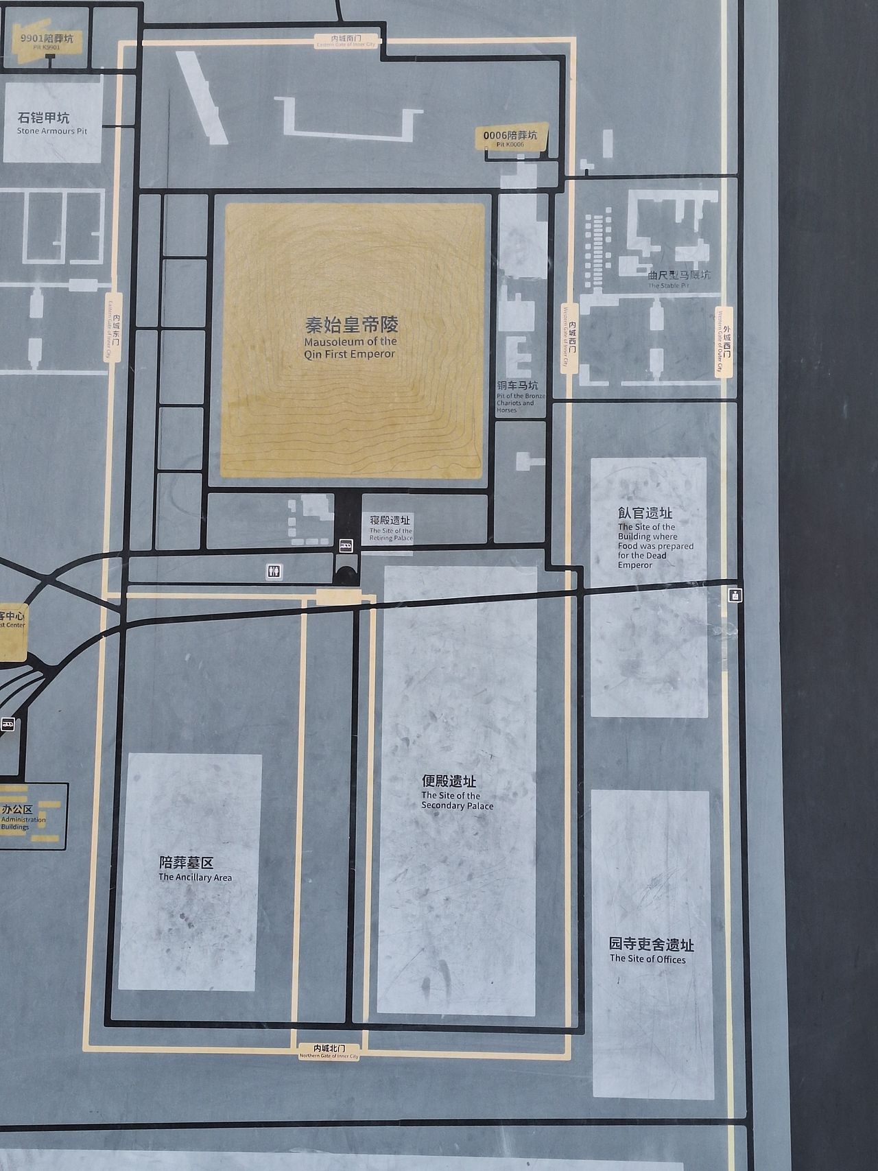 และอุทยานโบราณคดีแห่งชาติสุสานฉินซีฮ่องเต้ Qin Shi Huang Mausoleum จากพิพิธภัณฑ์ทหารฯ ไปสุสาน มีรถบริการฟรี คนรอคิวเยอะมาก ถึงสุสานแนะนำจ่ายค่ารถกอล์ฟ เพราะเดินไกลมากกว่าจะถึงพิพิธภัณฑ์ในสุสาน
