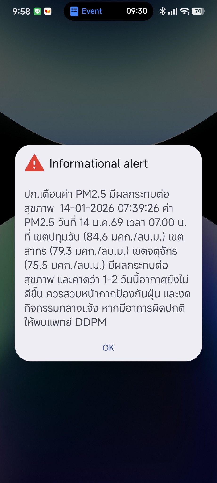 : มีใครได้รับแจ้งเตือน (Alert) เรื่อง PM2.5 จาก ปภ. เช้านี้บ้างครับ? (14 ม.ค. 69)