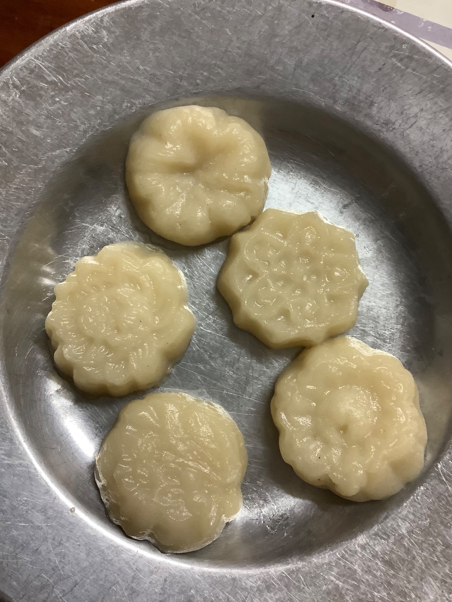 ขนมโก๋ ไส้ถั่ว ป้าใช้พิมพ์ขนมไหว้พระจันทร์ 100 กรัม ค่ะ ส่วนผสม 1.แป้งขนมโก๋ 300 กรัม(หรือแป้งข้าวเหนียว เอาไปผัดไฟอ่อนจนแป้งสุก) 2.น้ำตาลไอซิ่ง 360 ml 3.น้ำร้อน 100 กรัม (สามารถเพิ่มเนยขาวไปอีก 30 ก