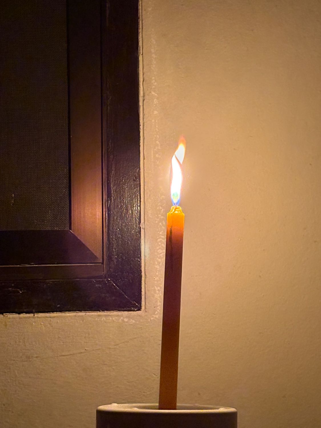 บรรยากาศแบบนี้ เหมาะแก่การฝึกกสิณไฟ (เตโชกสิณ) อย่างยิ่ง วันนี้ทดลอง เดินจงกรม เพ่งกสิณไฟ 1 ชม. (19:00-20:00) และนั่งสมาธิ เพ่งกสิณไฟ อีก 1 ชม. (20:00-21:00) ตอนช่วงกลางวันฝึกรู้ลมหายใจเข้า-ออก อานาปานสติ 4 ชม.