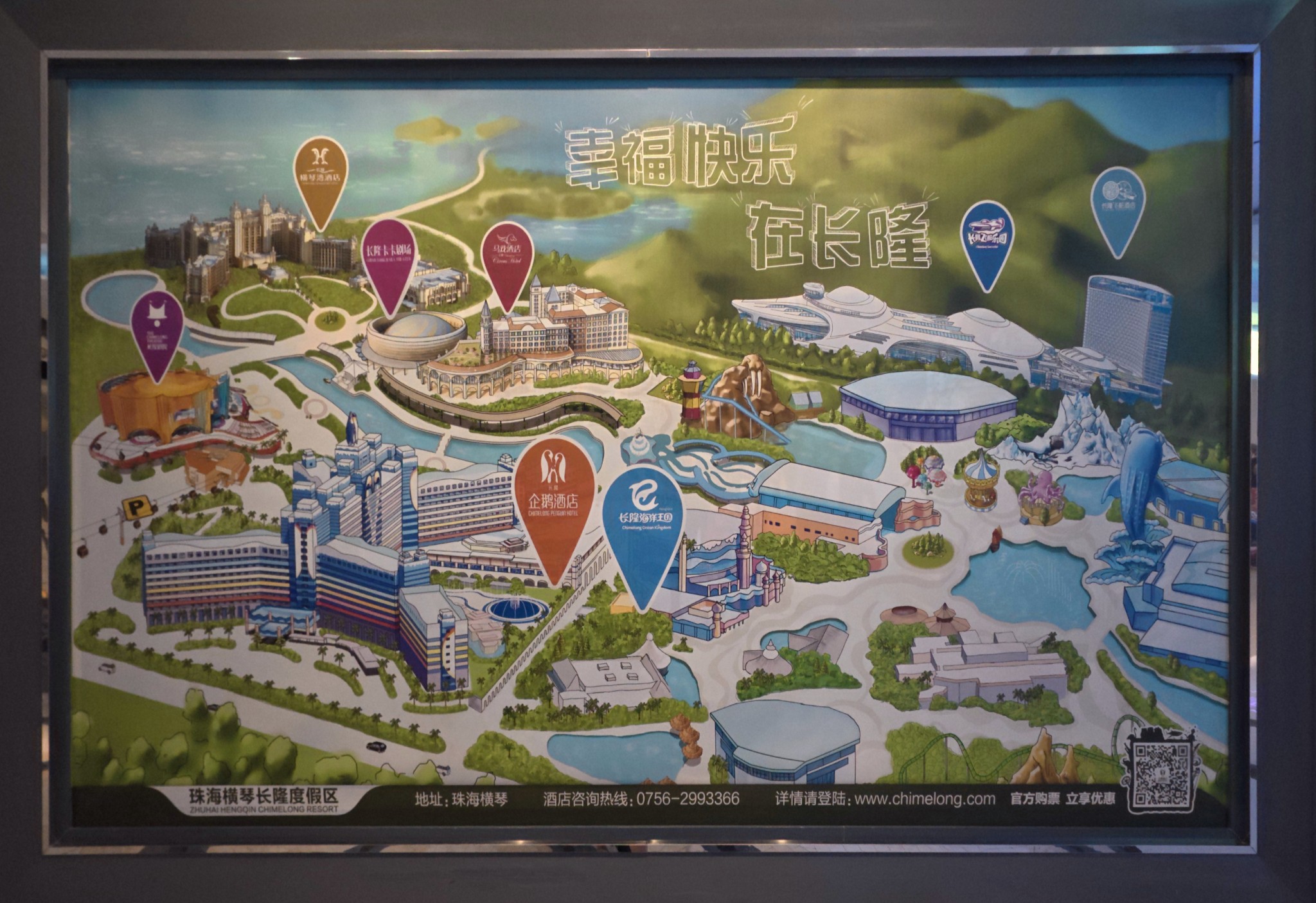 ทั้งสองสวนสนุก ตั้งอยู่ใน Chimelong International Ocean Resort เขตเหิงฉิน เมืองจูไห่ กวางตุ้ง ประเทศจีน (ติดมาเก๊า)
