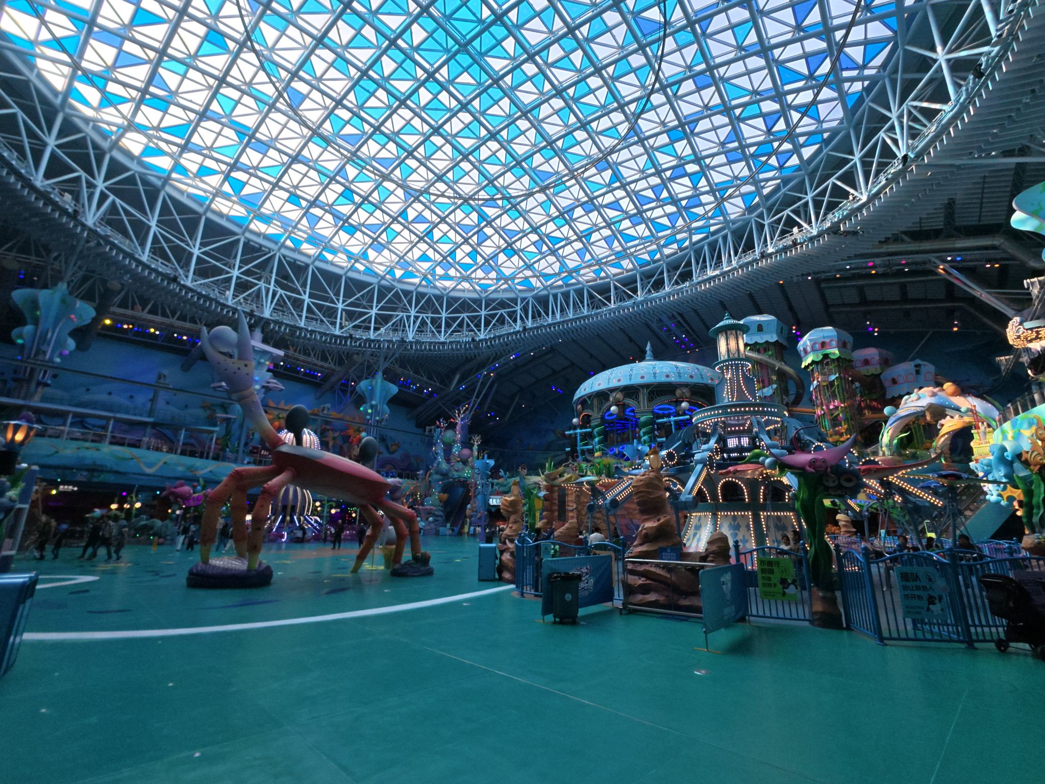 ส่วน Chimelong Spaceship เป็นธีมพาร์คในร่มแนวอวกาศ–ทะเลที่อยู่ในอาคารเดียวกัน