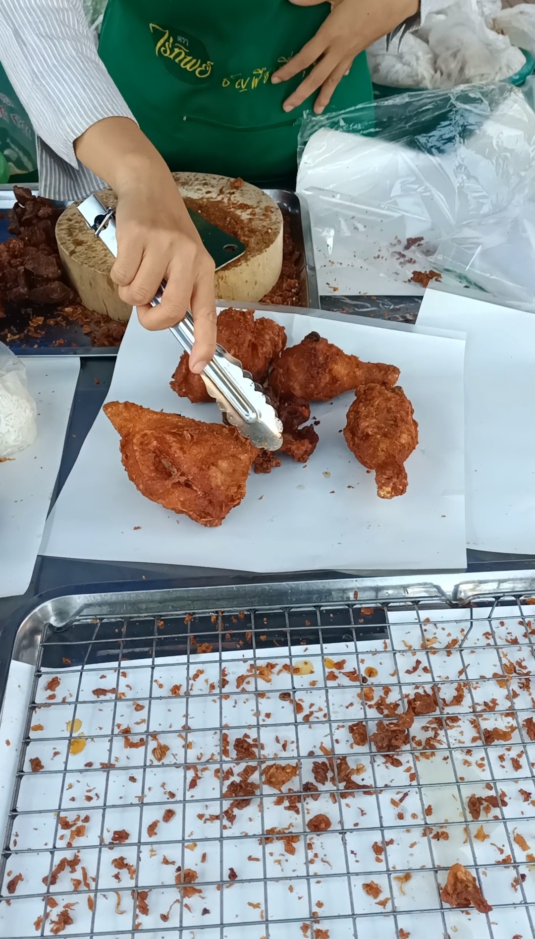 พอถึงคิว เราก็คีบ ไก่ชิ้นที่ต้องการ วางไว้รวมๆกัน