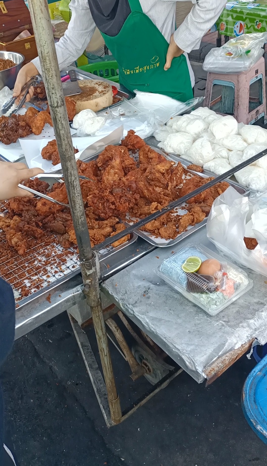 ปรากฏว่าเค้าขับไปตลาด เจอไก่ทอด ผมเห็นคนซื้อเยอะ ผมก็เลยไปเข้าคิวซื้อบ้าง