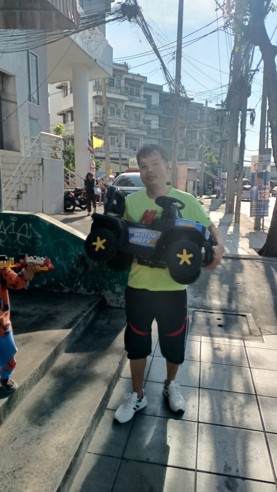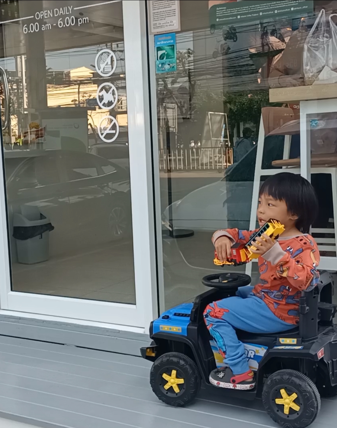 ผมต้องยกรถกลับบ้านเพราะซื้อชุดรถไฟให้ลูก ลูกเลยถือกล่องรถไฟแทน