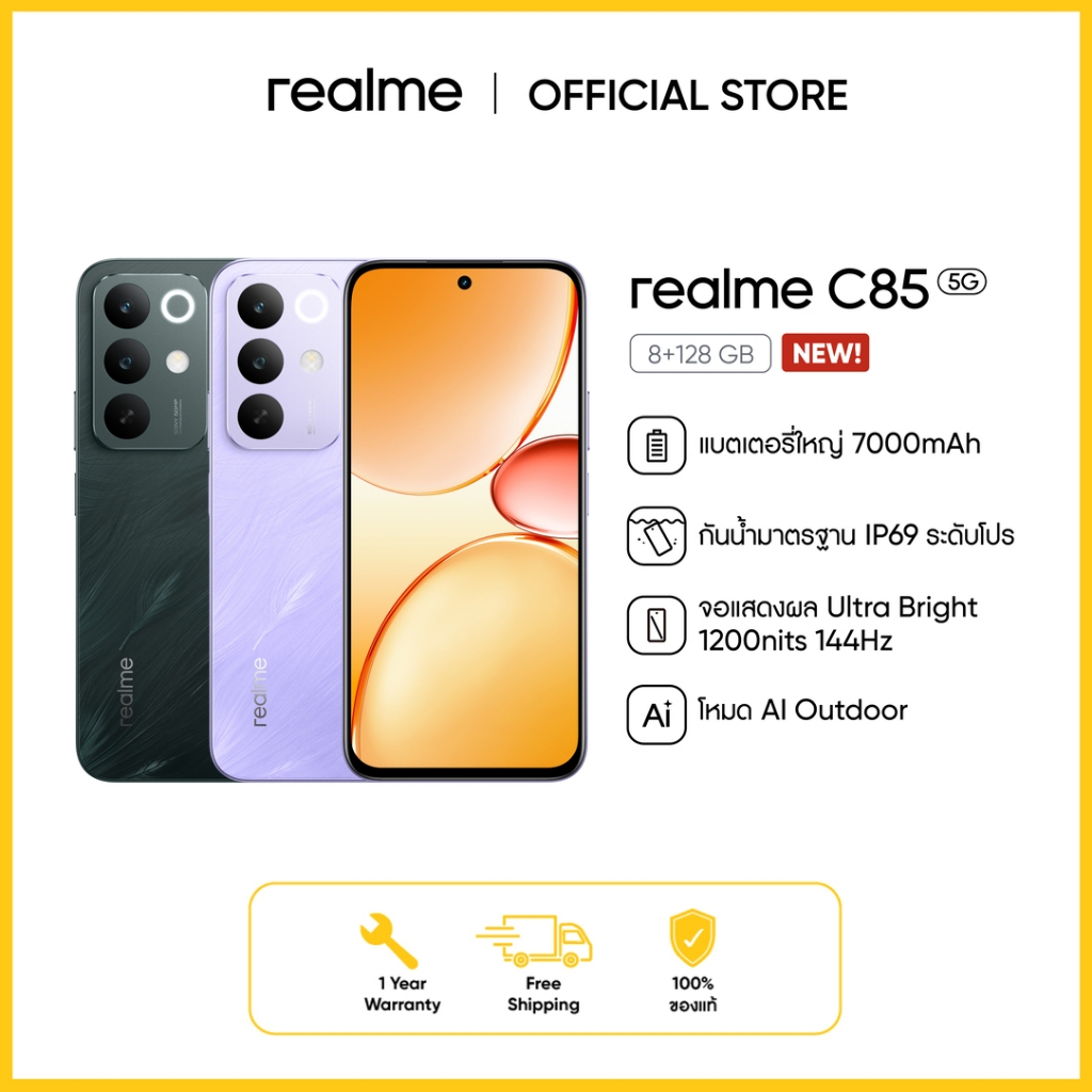 📱📸 realme C85 5G จอ 144Hz สว่าง 1200nits แบต 7000mAh กันน้ำ IP69 😎🔋