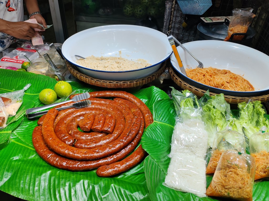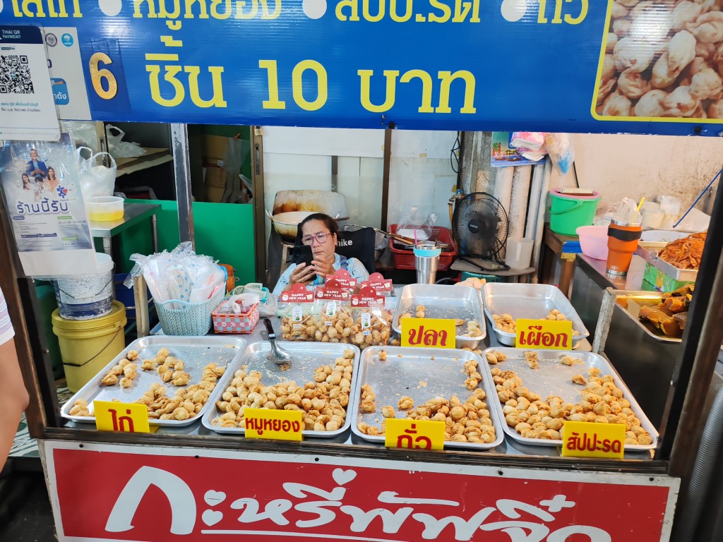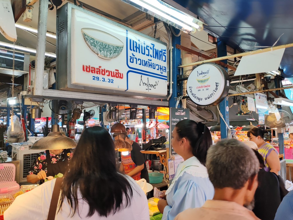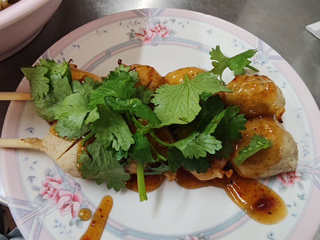 หน้าร้านมีขายลูกชิ้นหมู เอ็นหมูปิ้งด้วย นะ ระหว่างรอคิว น้องก็มารับออร์เดอร์ เราสั่งลูกชิ้นไว้เลย มีคุณป้าท่านนึงยืนคุยกับ ซ้อผม ป้าแกบอกว่าแกนั่งรถเมล์มามาไกลมาก จาก สมุทรปราการ อยากกิน อร่อย ต้องมา