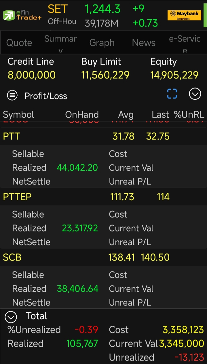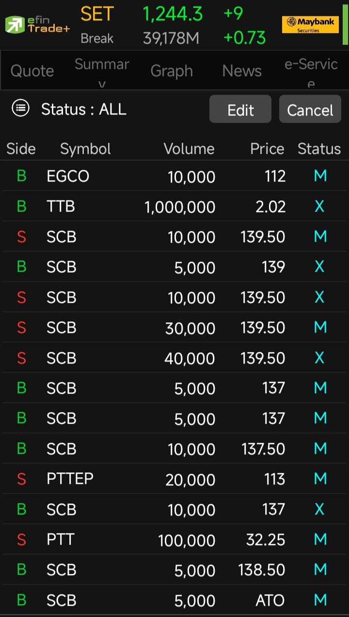 เสียดายขาย SCB เร็วไป 1 ช่อง ส่วนพี่เทพ ตะลุมบอนกับเขาแต่เช้าเลย เด่วรอหาจังหวะเข้าใหม่ ไม่รู้ช่วงบ่ายจะมีย่อมาอีกไหม ส่งกำลังใจให้เพื่อนนักลงทุนไทยทุกท่านฮะ