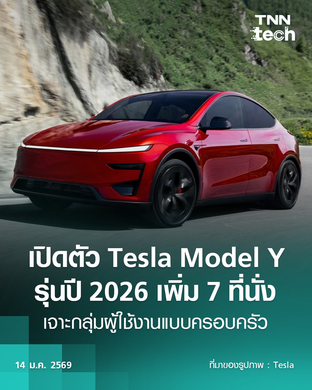 บริษัท เทสลา (Tesla) เปิดตัวรถยนต์ไฟฟ้า Tesla Model Y รุ่นปี 2026 อย่างเป็นทางการบนเว็บไซต์ของบริษัท พร้อมเพิ่มทางเลือกใหม่ที่เคยถูกเรียกร้องจากผู้บริโภคมาอย่างต่อเนื่อง นั่นคือ เวอร์ชัน 7 ที่นั่ง โดยเพิ่มเบาะแถวที่สามเข้ามา