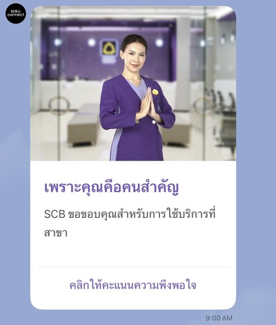 เตือนนะครับ ลูกค้าไทยพาณิชย์ที่ไปใช้บริการสาขา แล้ว Line ของ SCB Connect ส่งมาให้ประเมินการให้บริการของสาขา