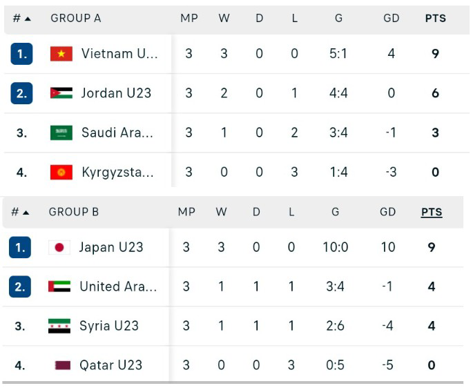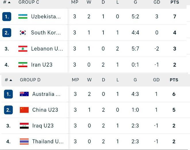 สรุปตารางคะแนน U23 เอเชียนคัพ 2026