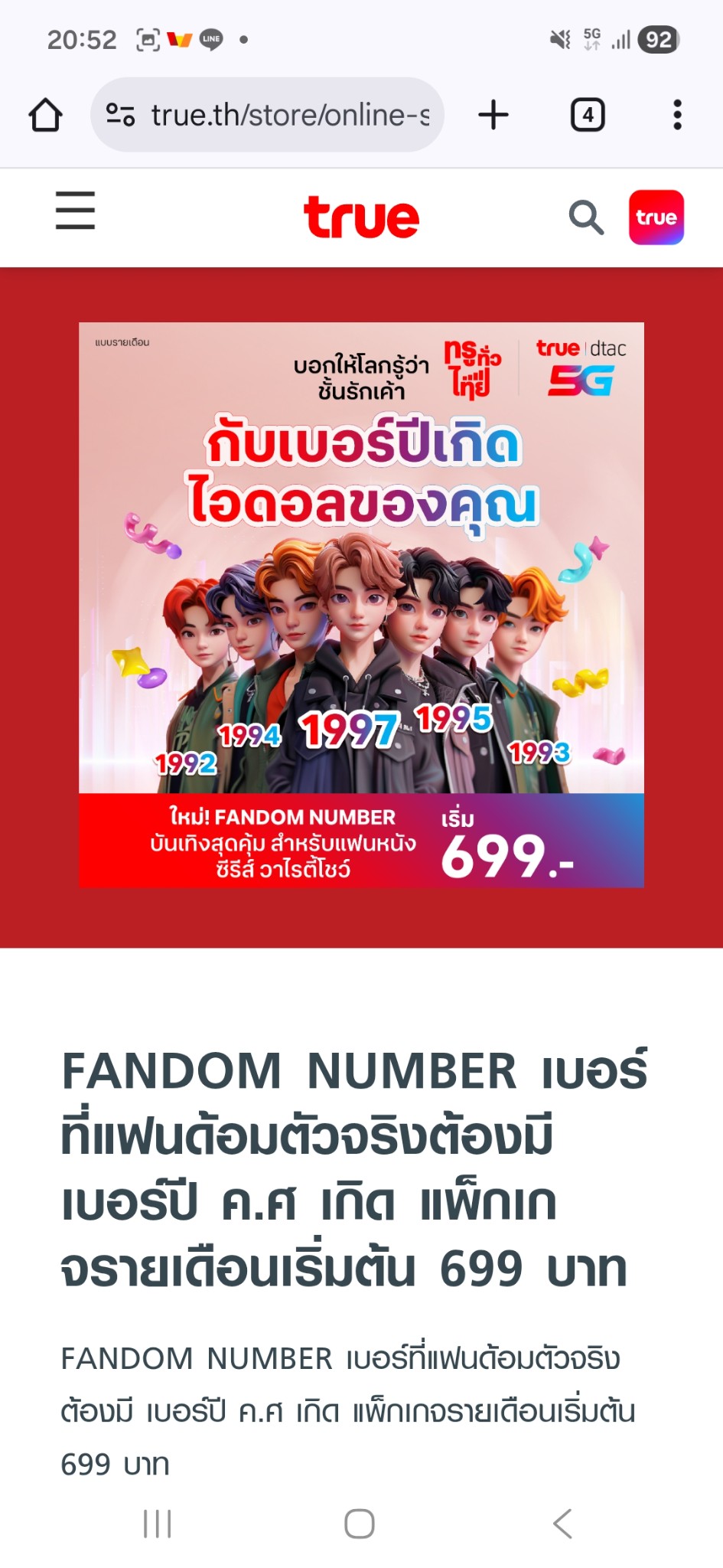 FANDOM NUMBER เบอร์ที่แฟนด้อมตัวจริงต้องมี เบอร์ปี ค.ศ เกิด แพ็กเกจรายเดือนเริ่มต้น 699 บาท ติดสัญญาหรือไม่