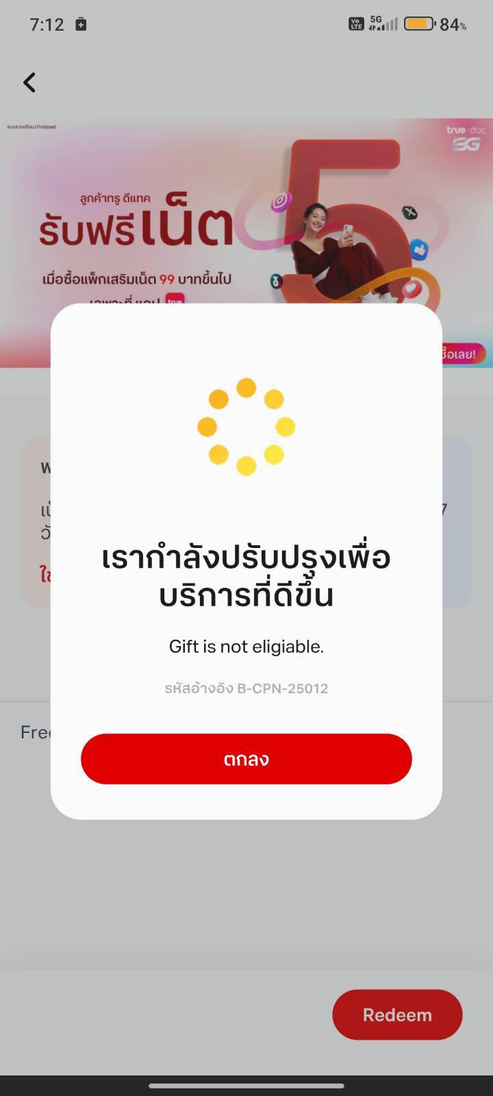 True กดรับเน็ต 1 gb จากกิจกรรมเช็คอินในแอพไม่ได้