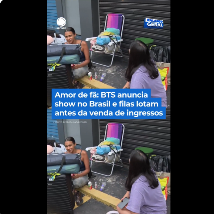 นักข่าวจาก Balanço Geral ของบราซิล ได้เข้าไปรายงานและสัมภาษณ์แฟน ๆ ของ BTS
