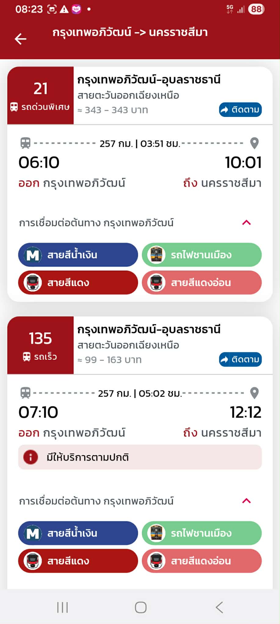 ระหว่างรถไฟกับรถทัวร์ที่วิ่งจากกรุงเทพไปโคราช ก็ใช้เวลาไม่ต่างกัน 3 ชั่วโมงครึ่ง-4 ชั่วโมง แต่รถไฟมีค่าโดยสารถูกกว่า ถูกกว่าไม่ถึงร้อยบาท