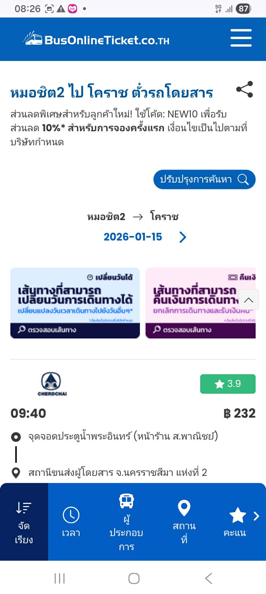 ค่าโดยสารรถทัวร์กรุงเทพ-โคราช