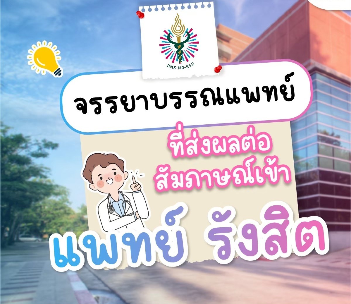 สวัสดีครับเพื่อนๆ สมาชิกพันทิป โดยเฉพาะน้องๆ ที่กำลังเตรียมตัวสอบสัมภาษณ์เข้าคณะแพทยศาสตร์ มหาวิทยาลัยรังสิต และสถาบันอื่นๆ