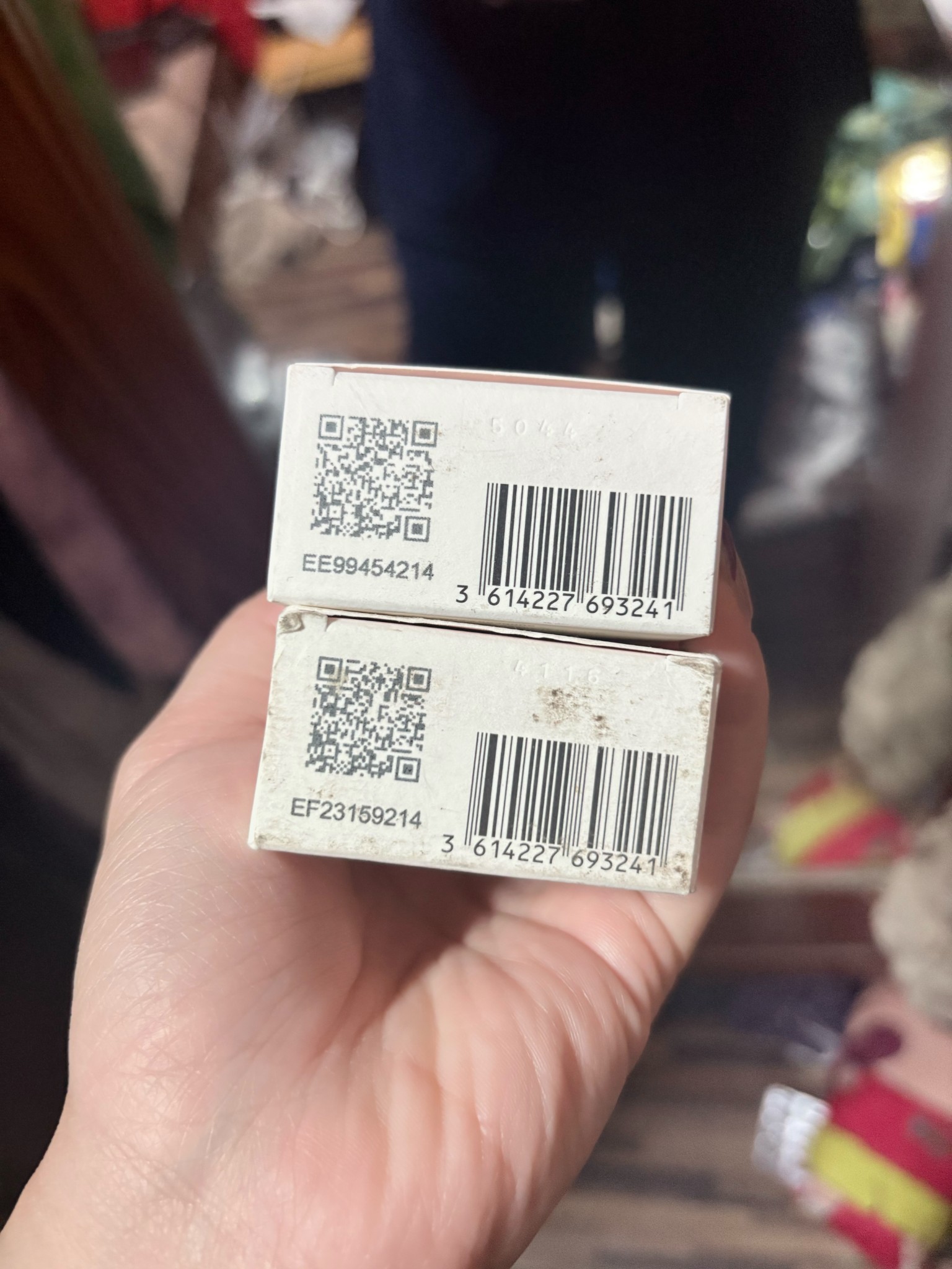 รบกวนเพื่อนๆพี่ ช่วยดูหน่อยค่ะใช่ของแท้ไหมค่ะ ขวดที่หมดฝากน้องซื้อมาจาก EVEANDBOY ขวดที่มีน้ำหอม ซื้อมาจาก Shopee EVEANDBOY ค่ะ