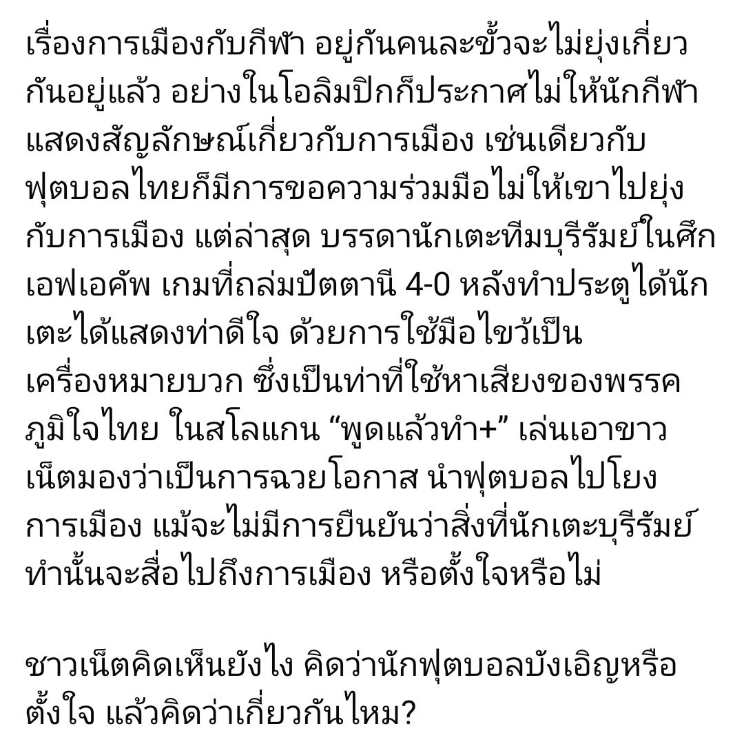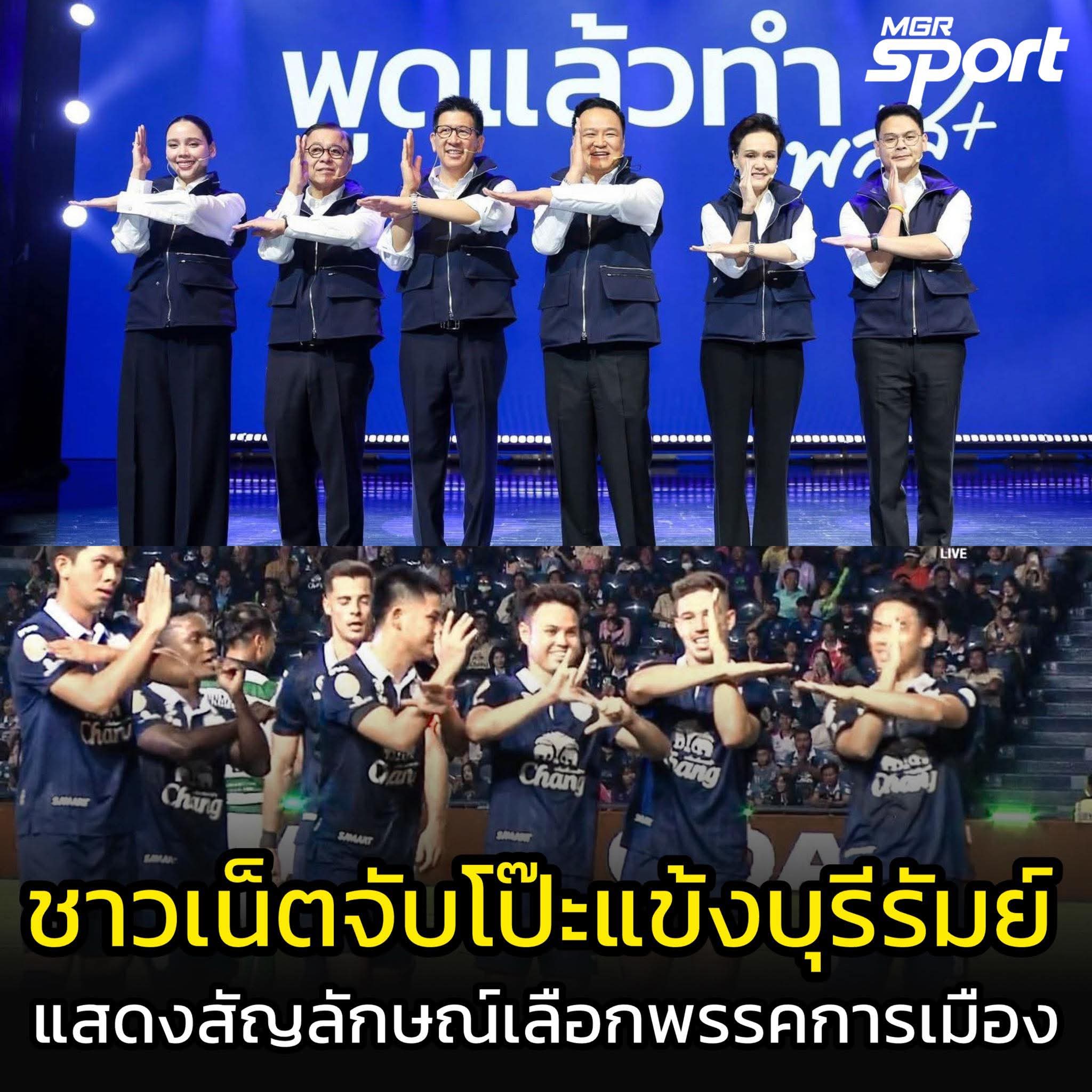 เพียว ชูสามนิ้วบอกแผนกับเพื่อนซึ่งไม่ได้เกี่ยวอะไรกับสัญลักษณ์ทางการเมือง โดนด่าไปเป็นอาทิตย์ ตัดภาพไปที่นักเตะบุรีรัมย์