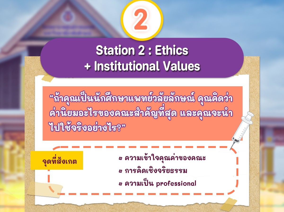 Station 2 (Ethics) ค่านิยมของคณะคืออะไร? แล้วคุณจะเอามาใช้จริงยังไงให้ดูเป็นมืออาชีพ?