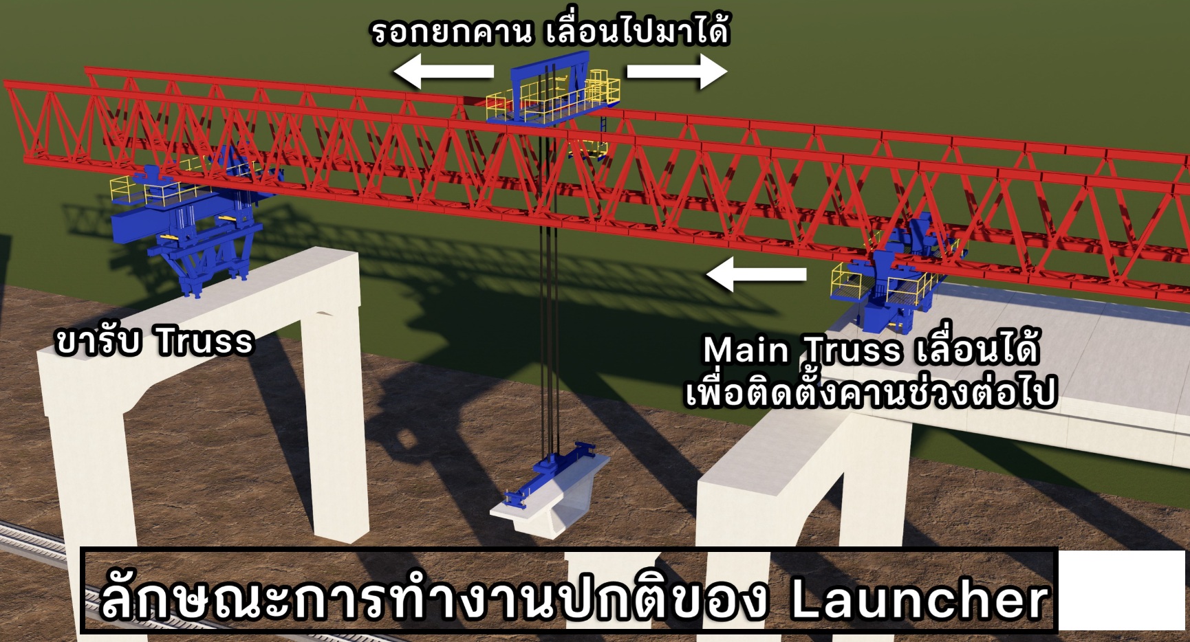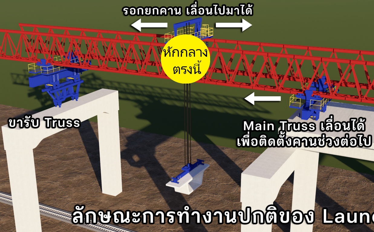 โครงการก่อสร้างพวกรถไฟฟ้าหรือรถไฟที่วิ่งบนราง จะใช้อุปกรณ์หลักที่เรียกว่า Launching Truss หรืออีกหลายชื่อที่วงการก่อสร้างคุ้นเคยคือ Launching Girder , Beam launcher ครับ  มันเป็นอุปกรณ์ในการติดตั้งคานคอนกรีตโดยมาเป็น block (กล่อง) มาเชื่อมต่อกัน