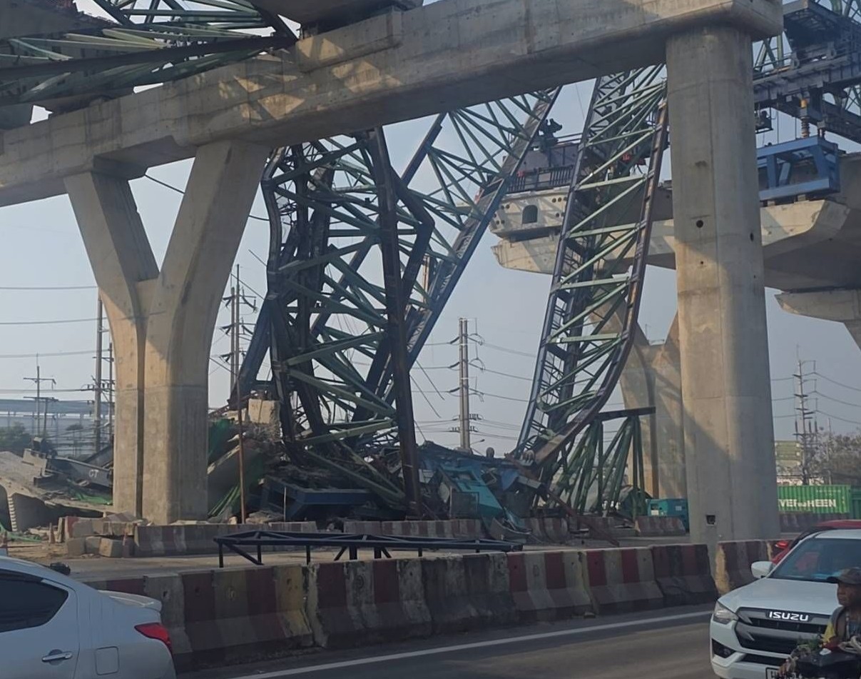 ส่วนเครนถล่ม 9 โมงเช้าวันนี้ที่ถนนพระราม 2 ฝั่งลงใต้บริเวณหน้าโรงแรมปารีส การ์เด้น อินน์ .... ตัวของโครงสร้าง Truss ได้หักตรงกลางตาม 3 ภาพล่างนี้เลยครับ