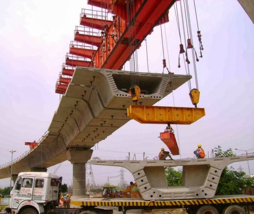 ภาพ block คอนกรีตที่ยกมาต่อกันเป็นคานสำหรับรางรถไฟ / รถไฟฟ้า / ทางด่วน