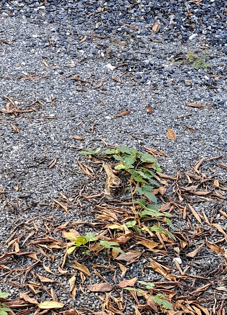 ที่เห็นอยู่นี่ นั่งกกไข่อยู่ด้วยนะ กำลังฟักไข่อยู่ 2 ฟอง สีสันกลมกลืนไปกับใบไม้แห้ง