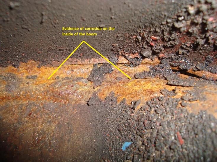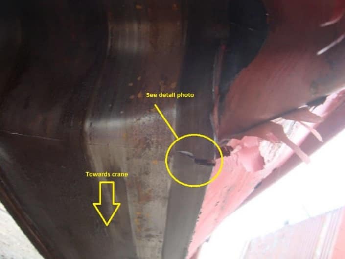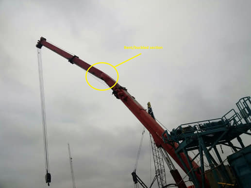 จากภาพเครนที่เกิดความเสียหาย จะพบว่าบริเวณที่เกิดการเสียรูป