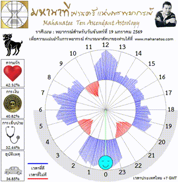 แผนภูมิและพยากรณ์ 12 ราศี สำหรับ วันจันทร์ที่ 19 มกราคม 2569