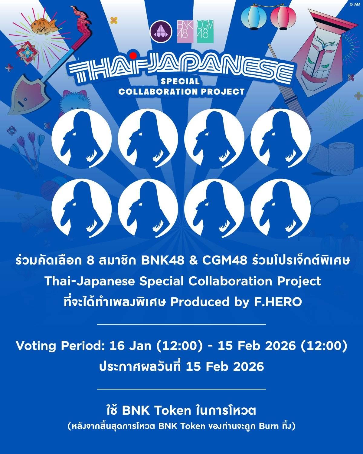 Special Collaboration Project ร่วมคัดเลือก 8 สมาชิก BNK48 & CGM48 ร่วมโปรเจ็กต์พิเศษ Thai-Japanese Special Collaboration Project ที่จะได้ทำเพลงพิเศษ Produced by F.HERO 16 Jan (12:00) - 15 Feb 2026
